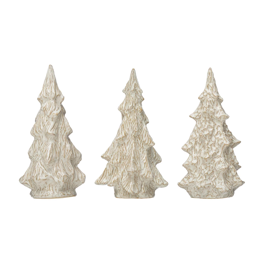 5-1/4" Round x 10-1/2"H Stoneware Tree, Reactive Glaze, White, 3 Styles