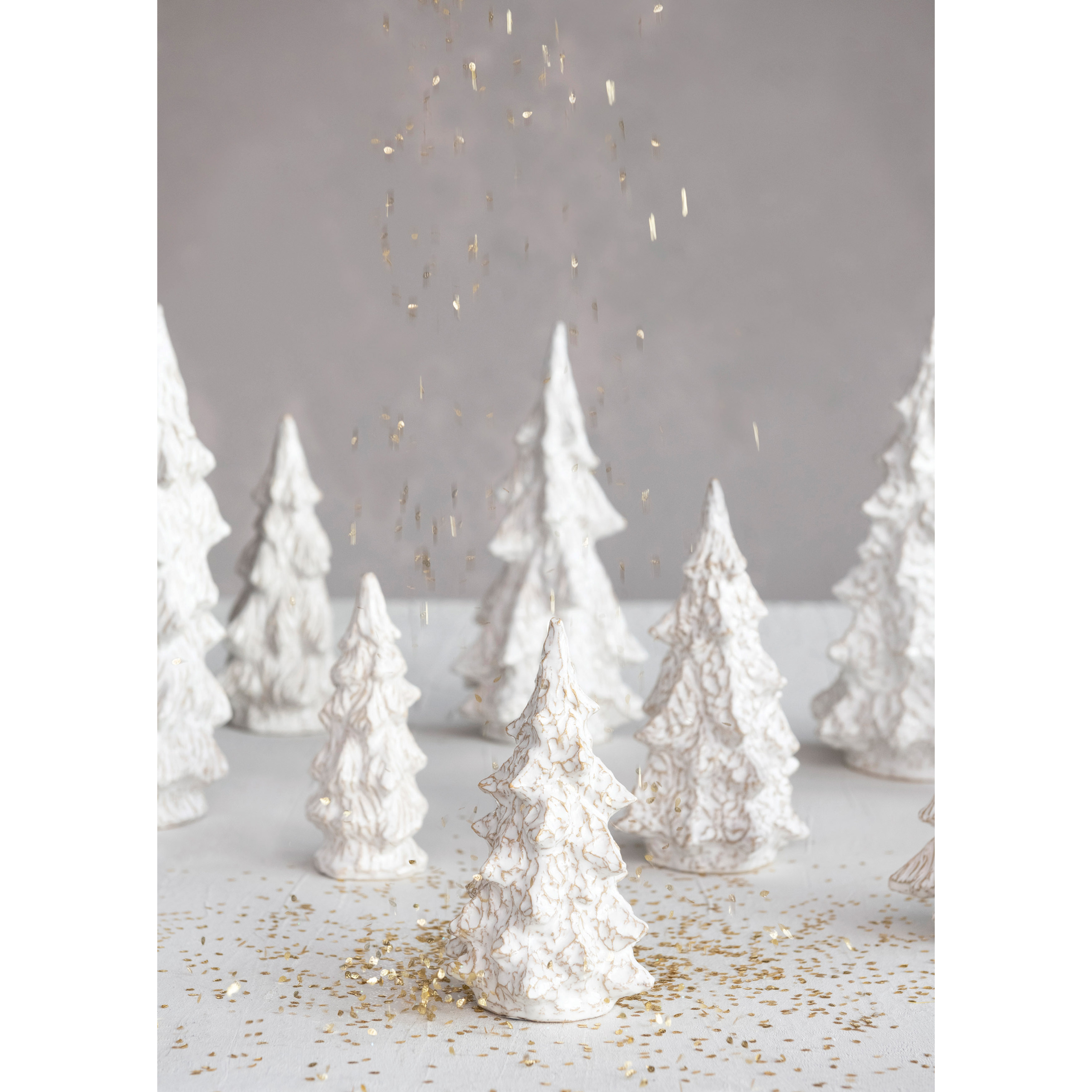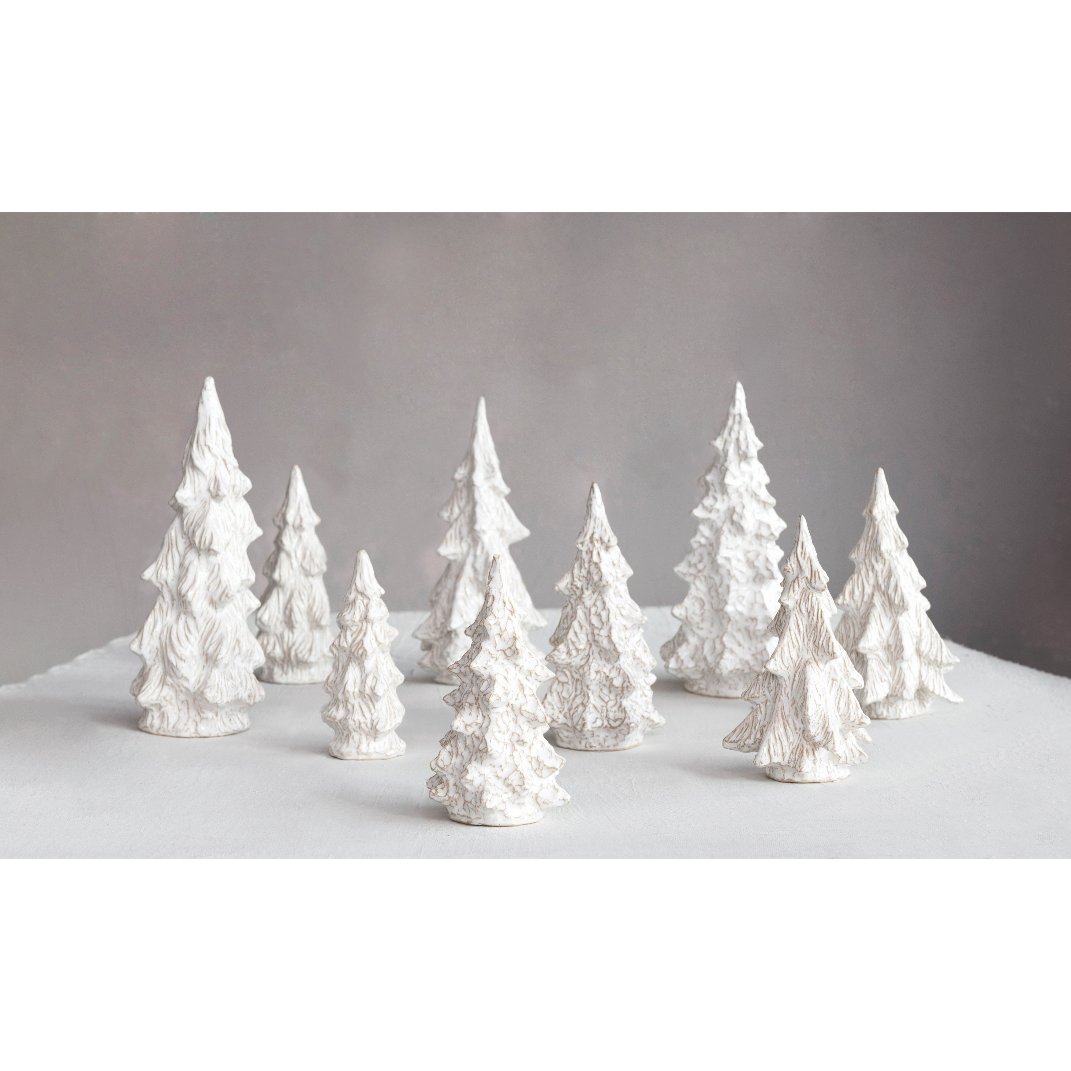 5-1/4" Round x 10-1/2"H Stoneware Tree, Reactive Glaze, White, 3 Styles