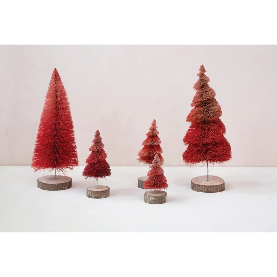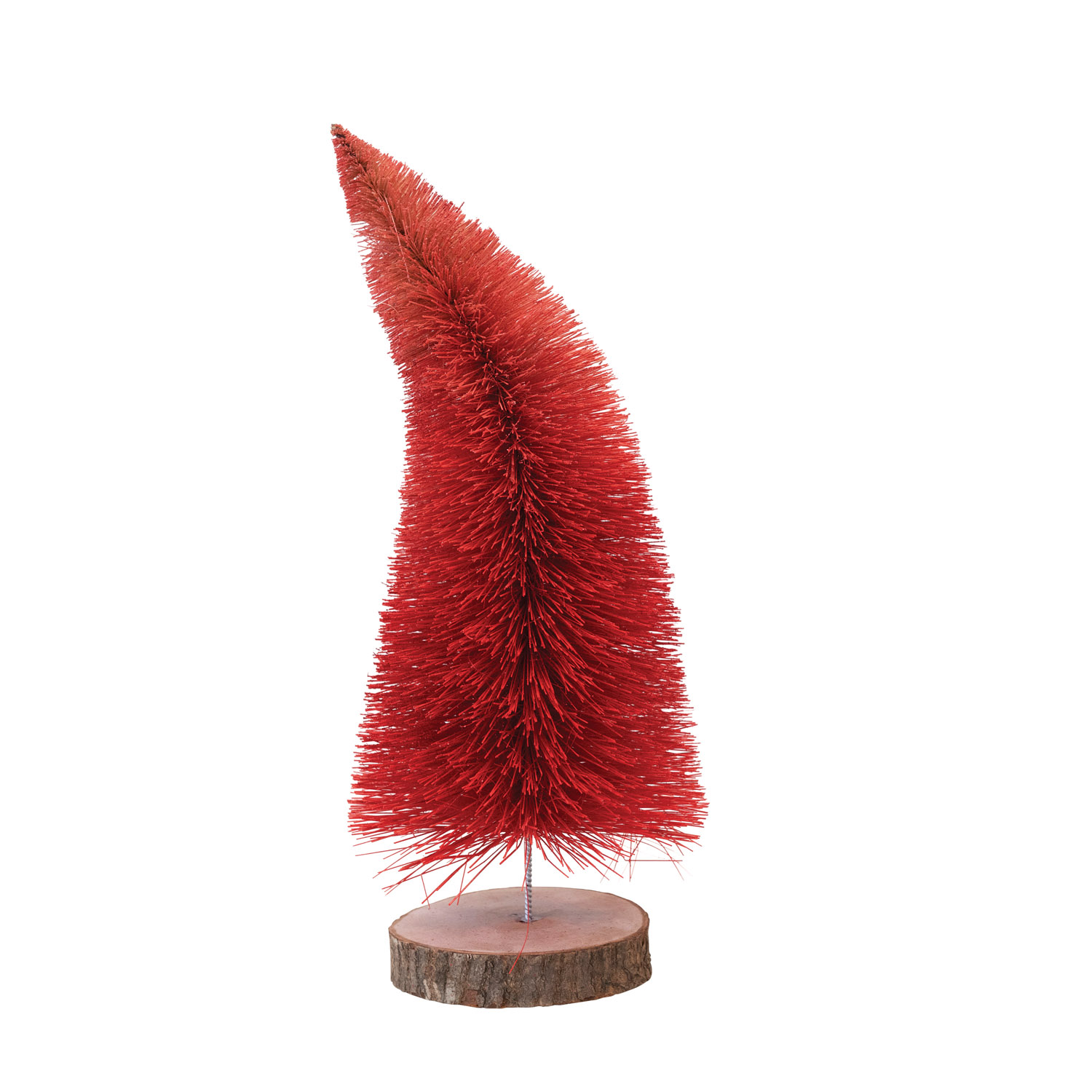 Catalog Name: 5" Round x 16"H Curved Sisal Bottle Brush Tree with Wood Slice Base, Red Ombre