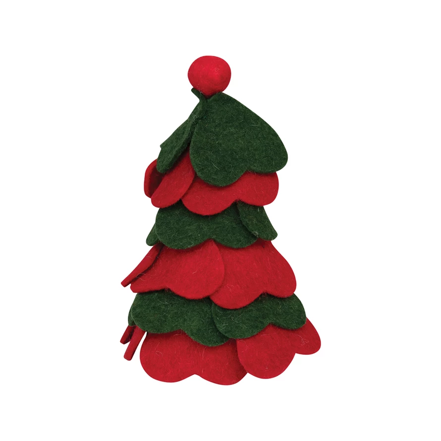 6" Round x 9"H Wool Felt Tree with Pom Pom, Red and Green