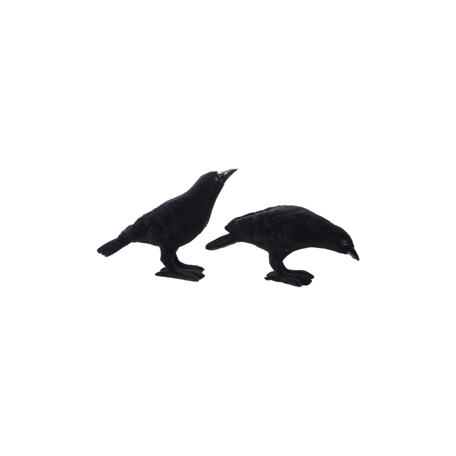 6-3/4"L - 7-1/2"L Flocked Resin Crow, Black, 2 Styles