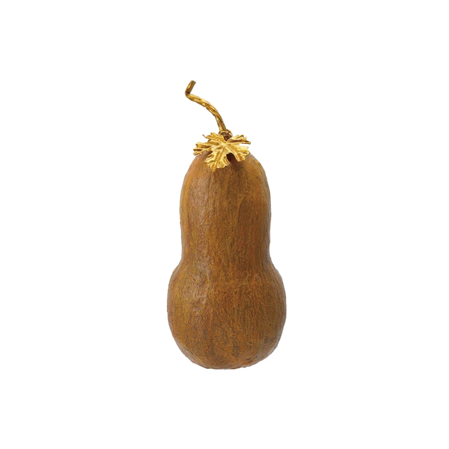 Paper Mache & Metal Pumpkin, Orange Color & Gold Finish