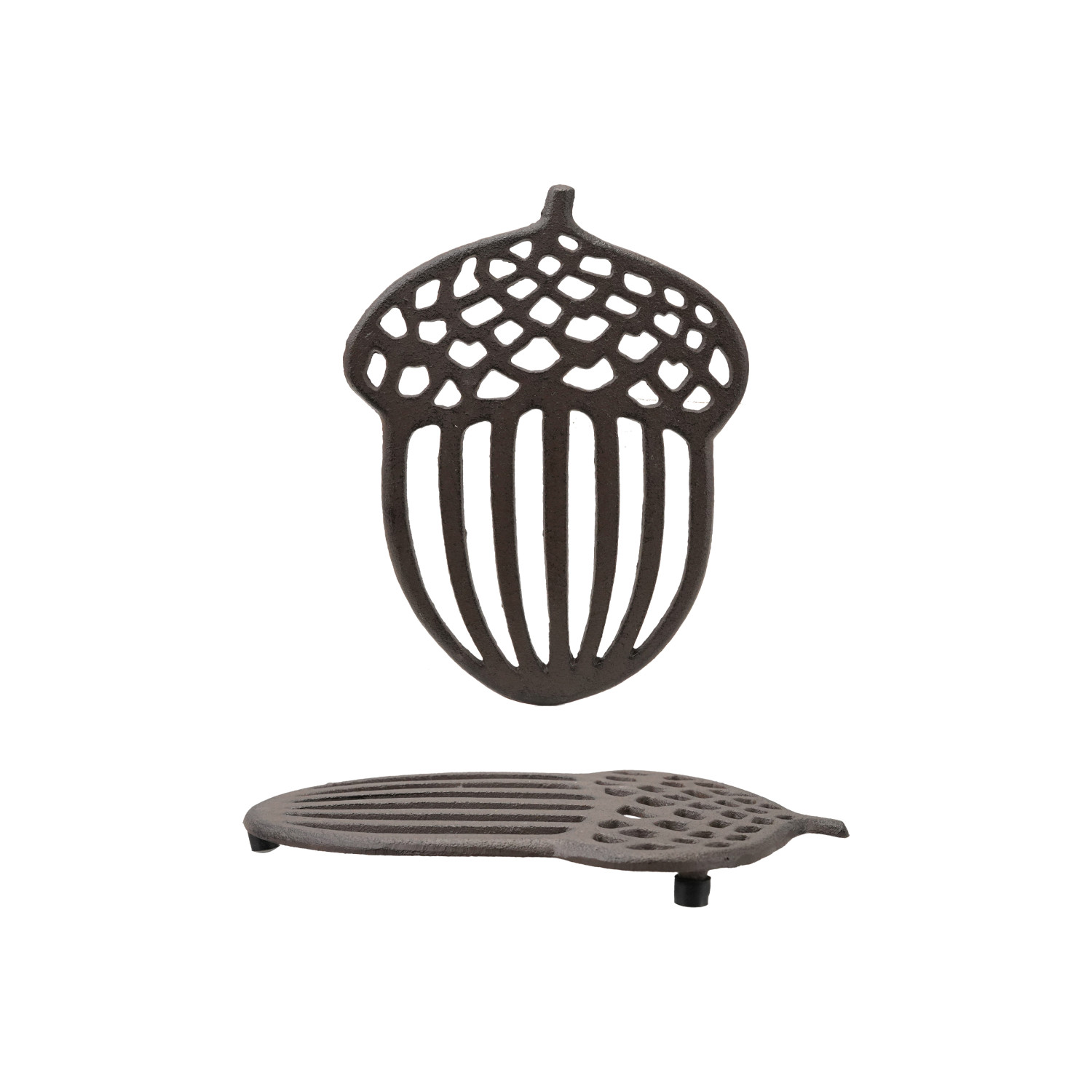 Catalog Name: 8-3/4"L x 6-1/4"W Cast Iron Acorn Shaped Trivet