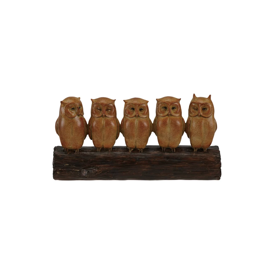 Catalog Name: 11-1/4"L x 2-3/4"W x 5-3/4"H Resin Owls on Log, Brown & Tan Color