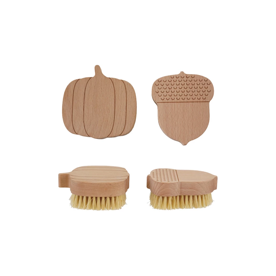 Beech Wood & Sisal Pumpkin/Acorn Shaped Brush, Natural, 2 Styles