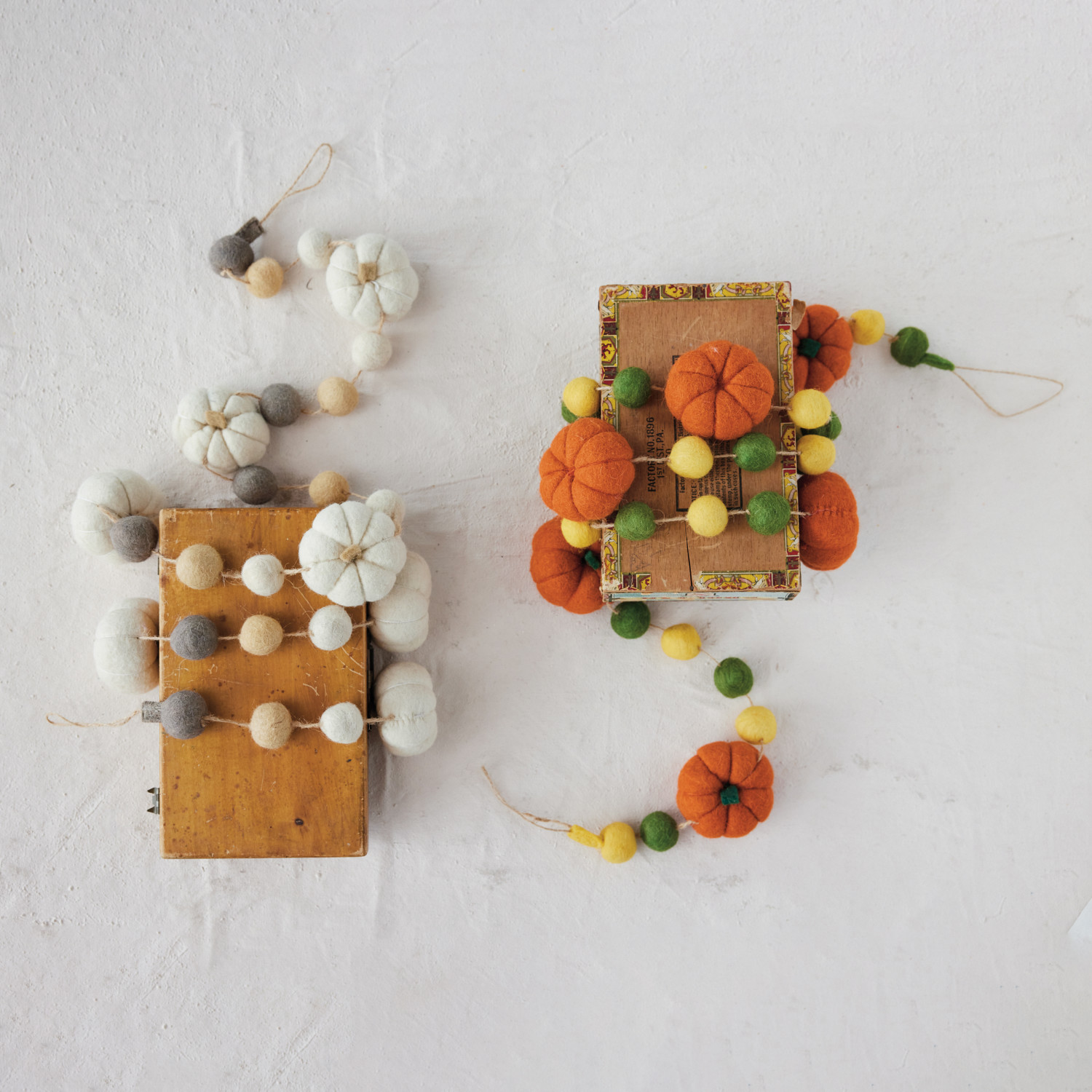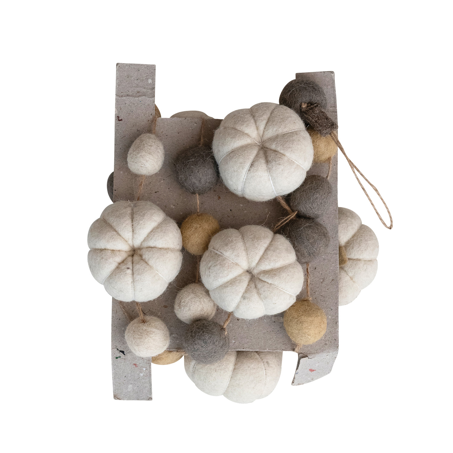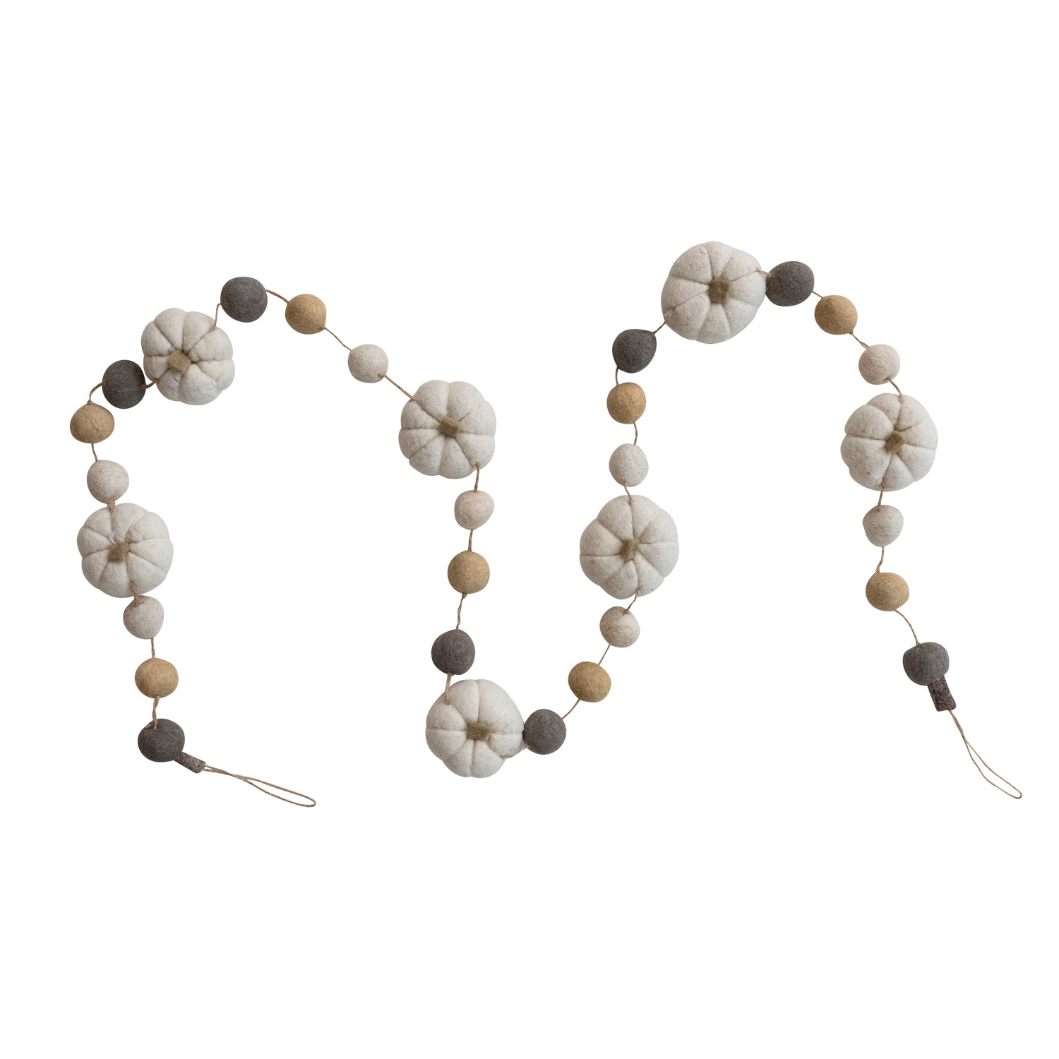 Catalog Name: 72"L x 3"H Handmade Wool Felt Pumpkin & Ball Garland w/ Jute Cord, Cream, Tan Color & Grey
