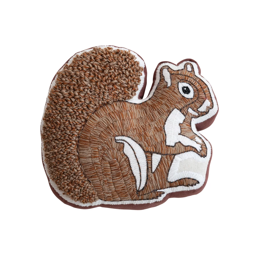 Cotton & Linen Embroidered Squirrel Shaped Pillow with Tufted Tail