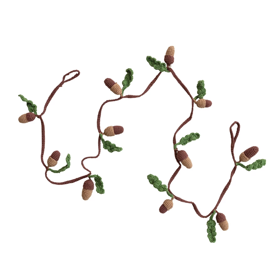 Cotton Crocheted Acorns & Leaves Garland, Brown, Tan Color & Green