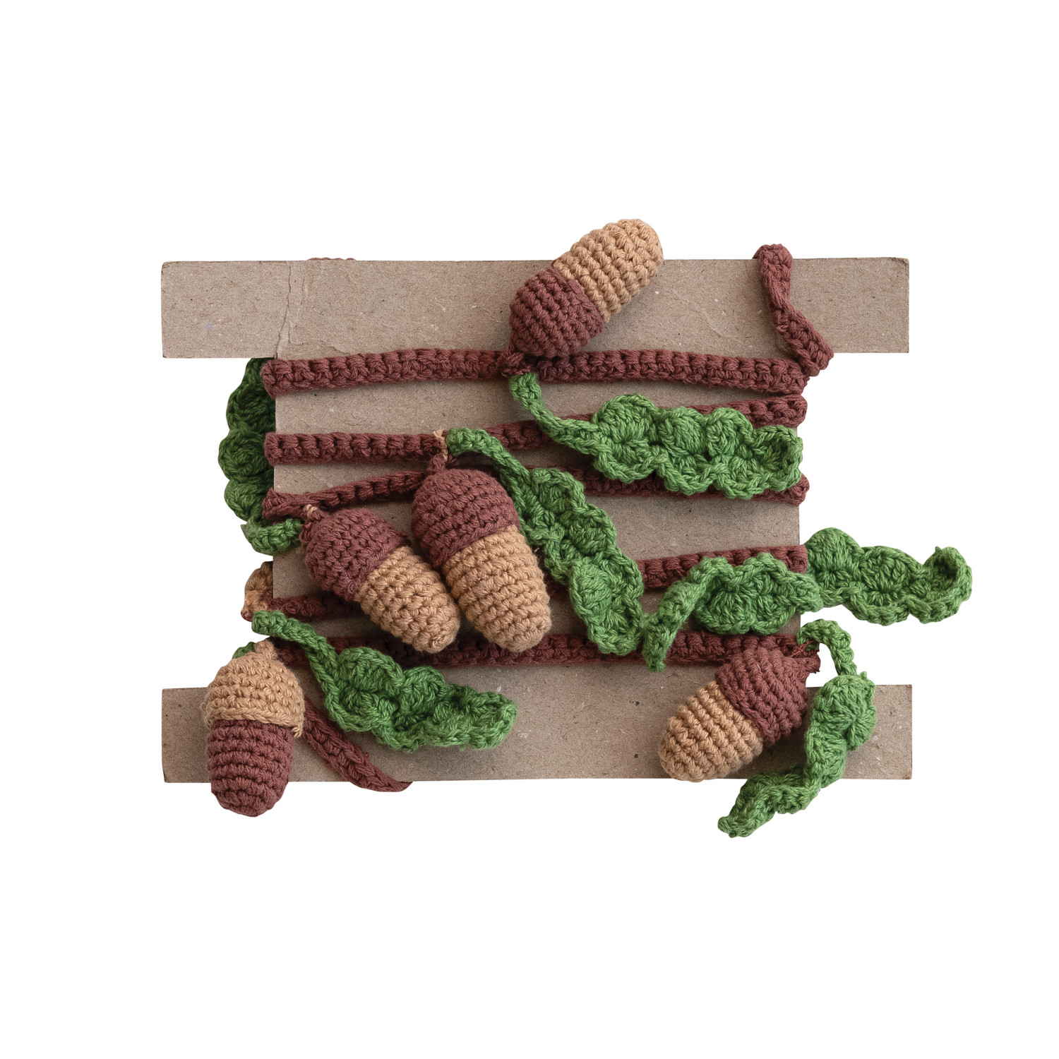 Catalog Name: 72"L x 3"H Cotton Crocheted Acorns & Leaves Garland, Brown, Tan Color & Green