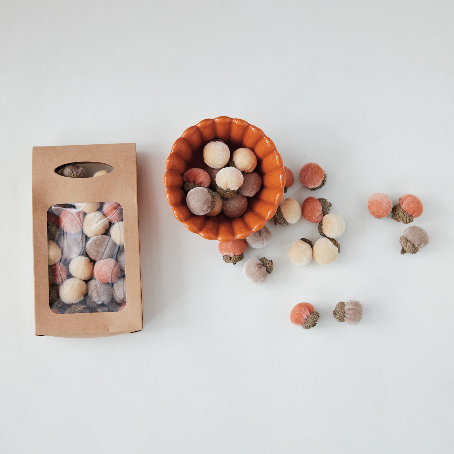 Catalog Name: Approximately 1-1/2"H Velvet Acorn Scatter in Bag, Grey, Rust & Cream Color (Contains 24 Pieces)