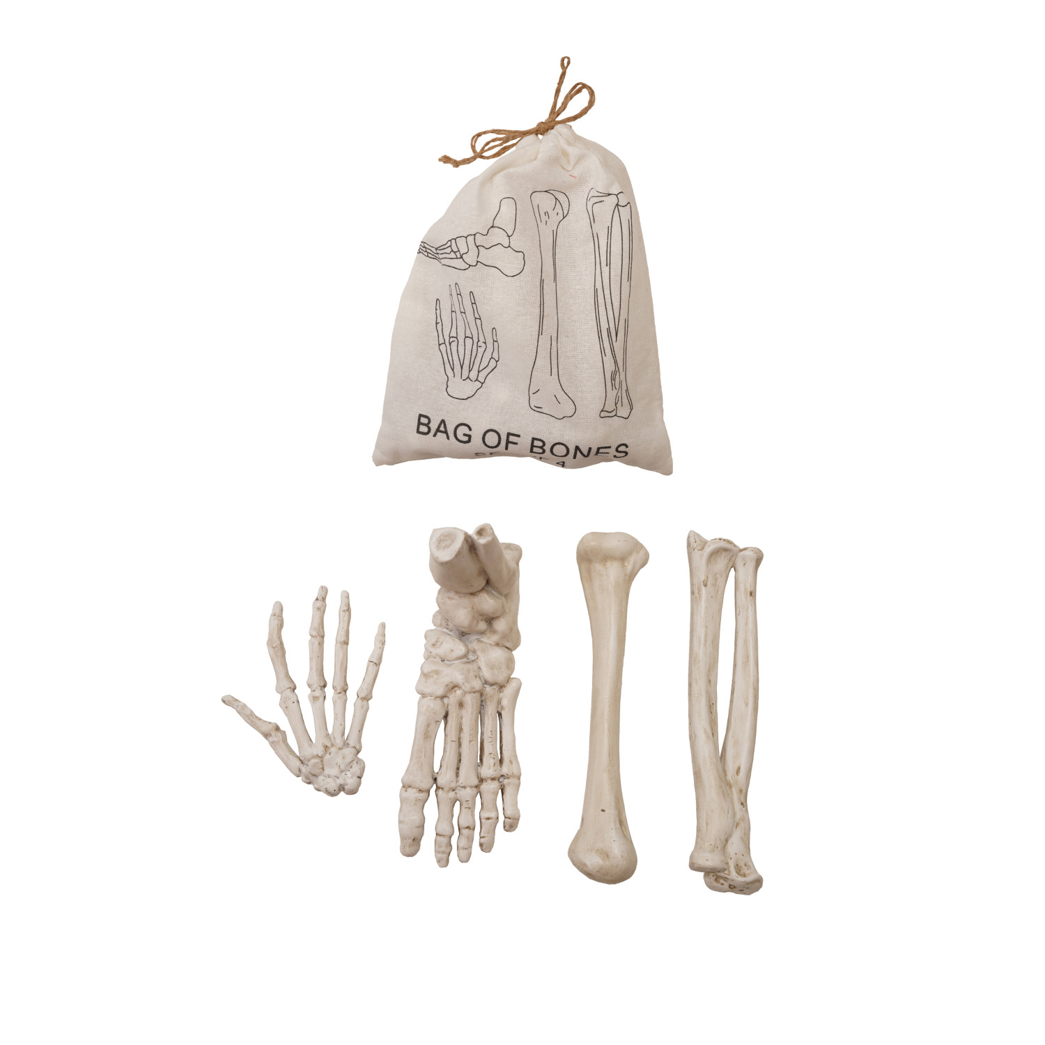 Resin Bag of Bones, White, Set of 4 in Printed Drawstring Bag