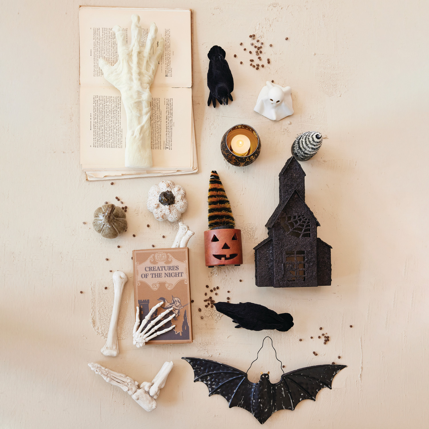 Catalog Name: 4-1/2"L - 7-1/2"L Resin Bag of Bones, White, Set of 4 in Printed Drawstring Bag