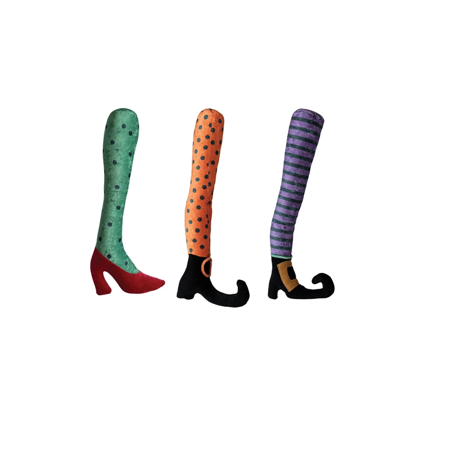 Catalog Name: 22"H - 26"H Fabric & Cotton Witch Leg w/ Shoe Shaped Pillow, Multi Color, 3 Styles