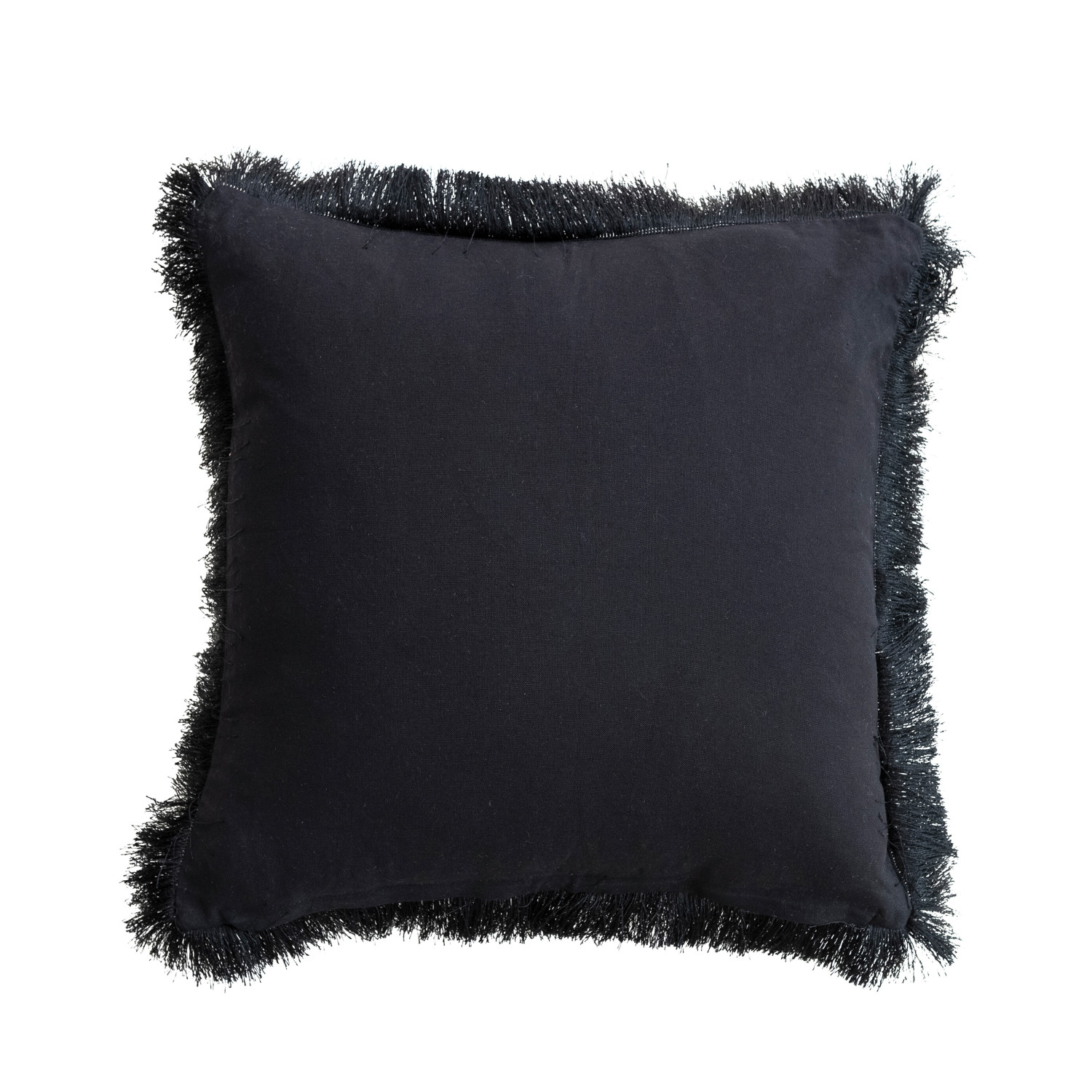 20" Square Cotton Slub Pillow with Embroidery, Beads & Eyelash Fringe