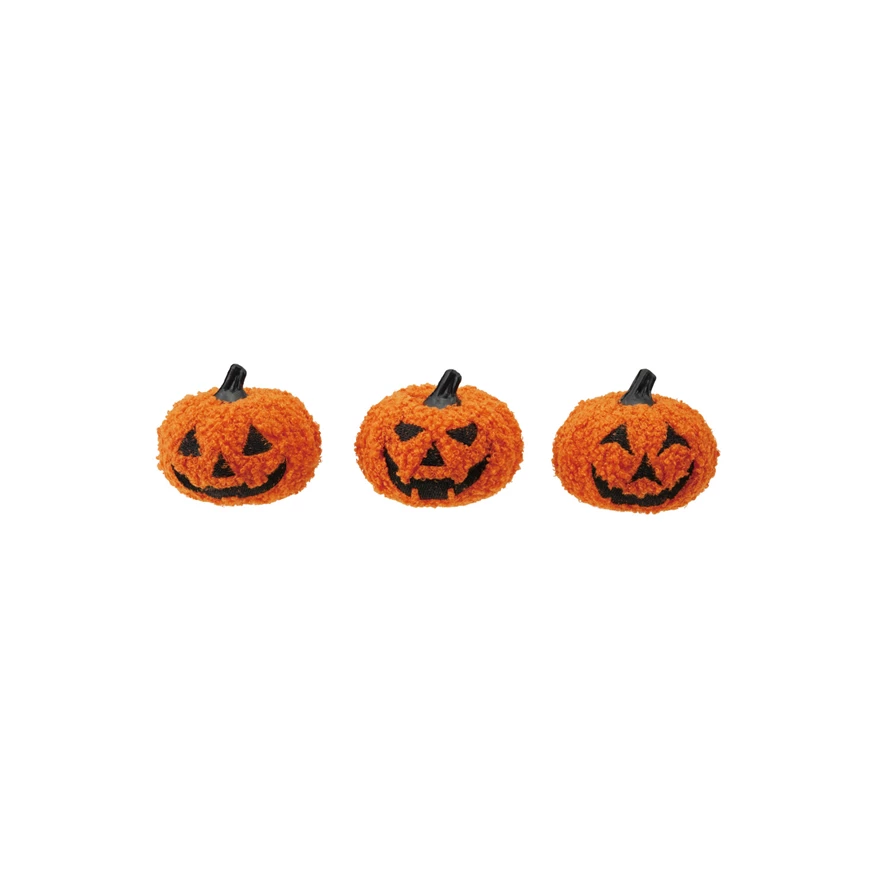 Catalog Name: 3" Round Foam & Fabric Bouclé Jack-O-Lantern, Orange Color & Black, 9 Styles