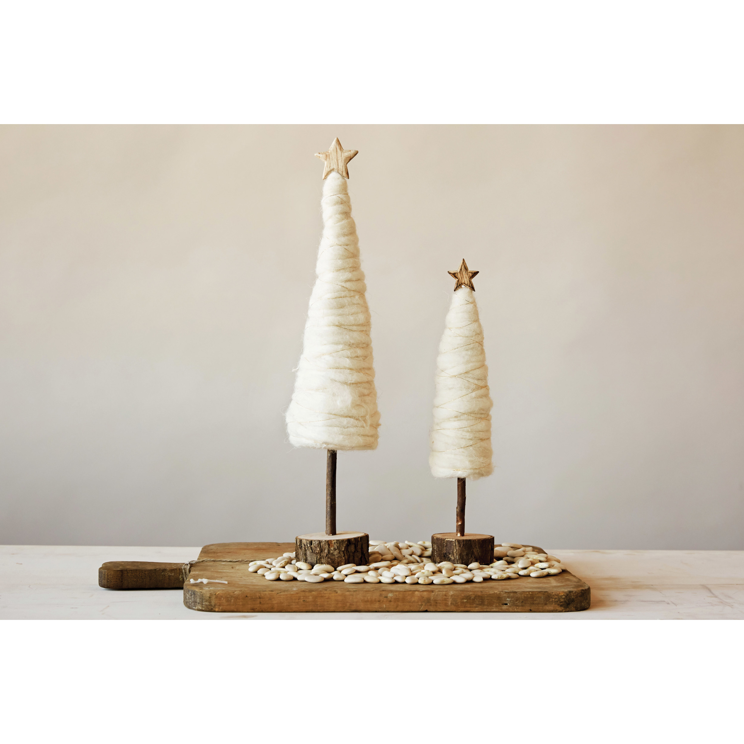 Catalog Name: 13"H Wool Christmas Tree w/ Star & Wood Slice Base, Cream Color
