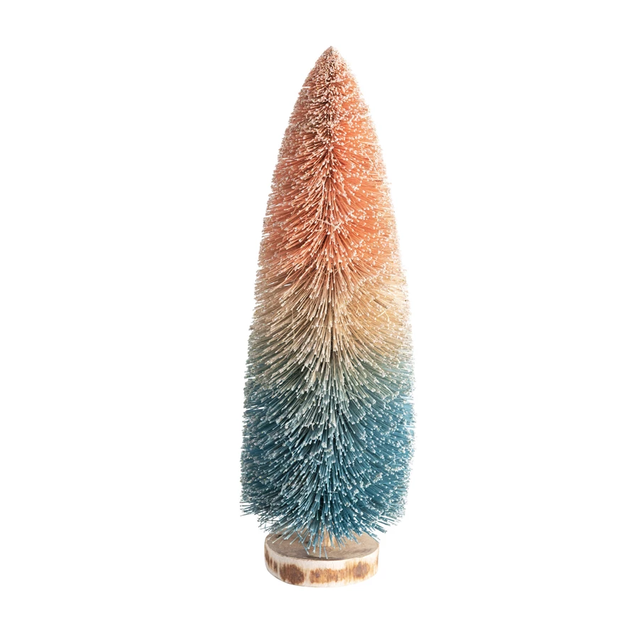 This festive tree is a beautiful way to decorate for the holiday season. Made with sisal, this bottle brush tree has a wood base and a fun pink to blue ombre finish. This tree instantly elevates any table tops or shelves, and blends in with any decor styles.