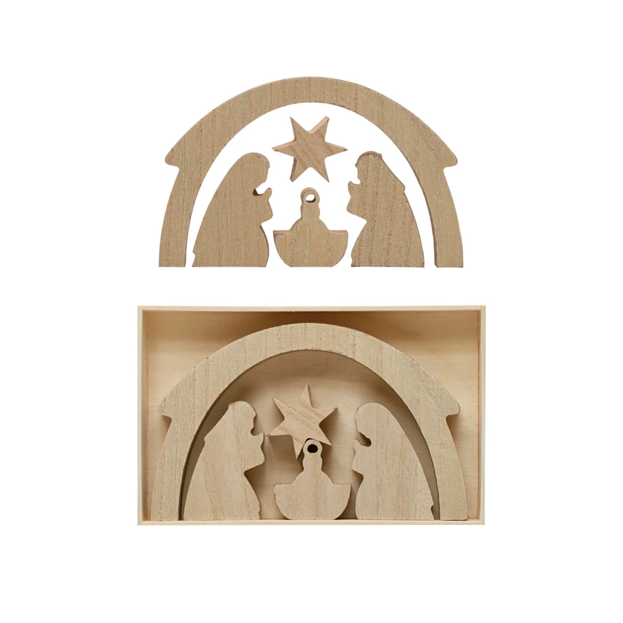 1-1/4"H - 4-1/2"H Wood Nativity, Natural, Boxed Set of 5