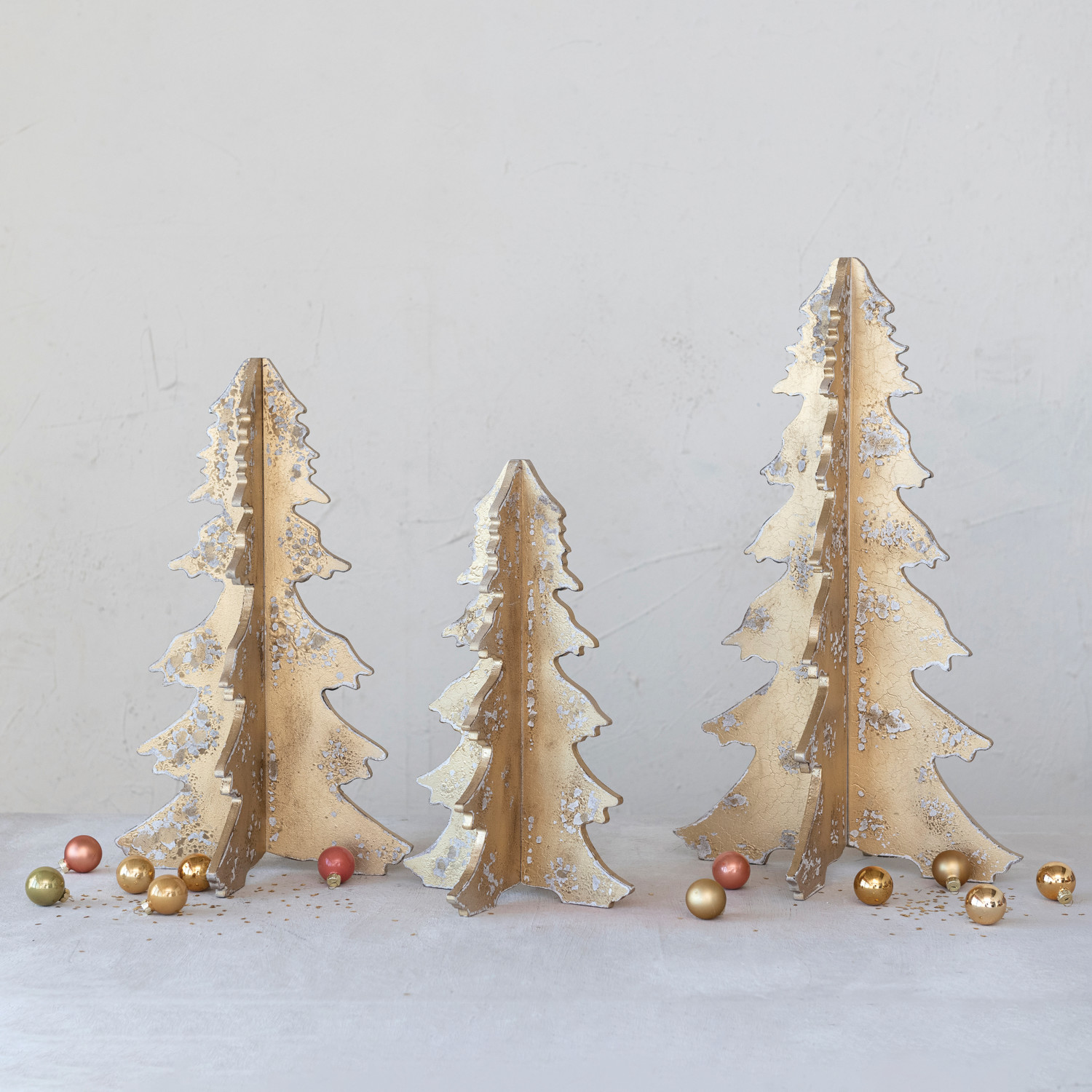 Catalog Name: 9-1/4" Round x 15-1/2"H MDF Interlocking Laser Cut Tree, Distressed Gold Finish, KD