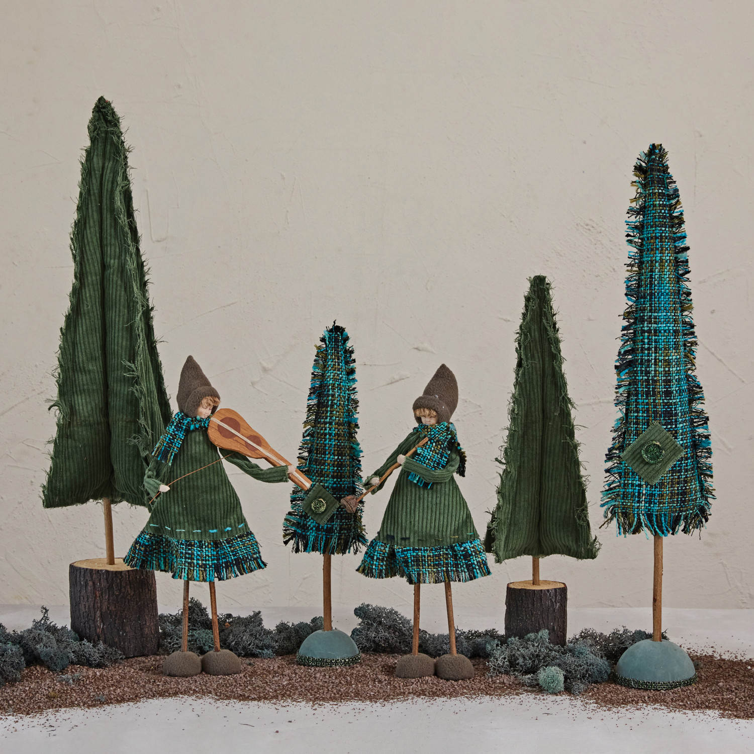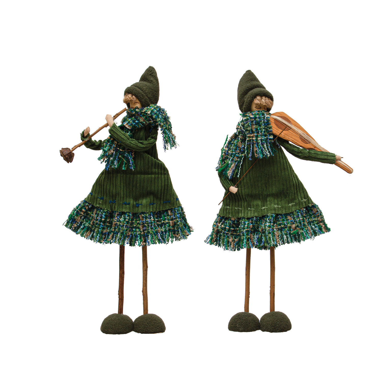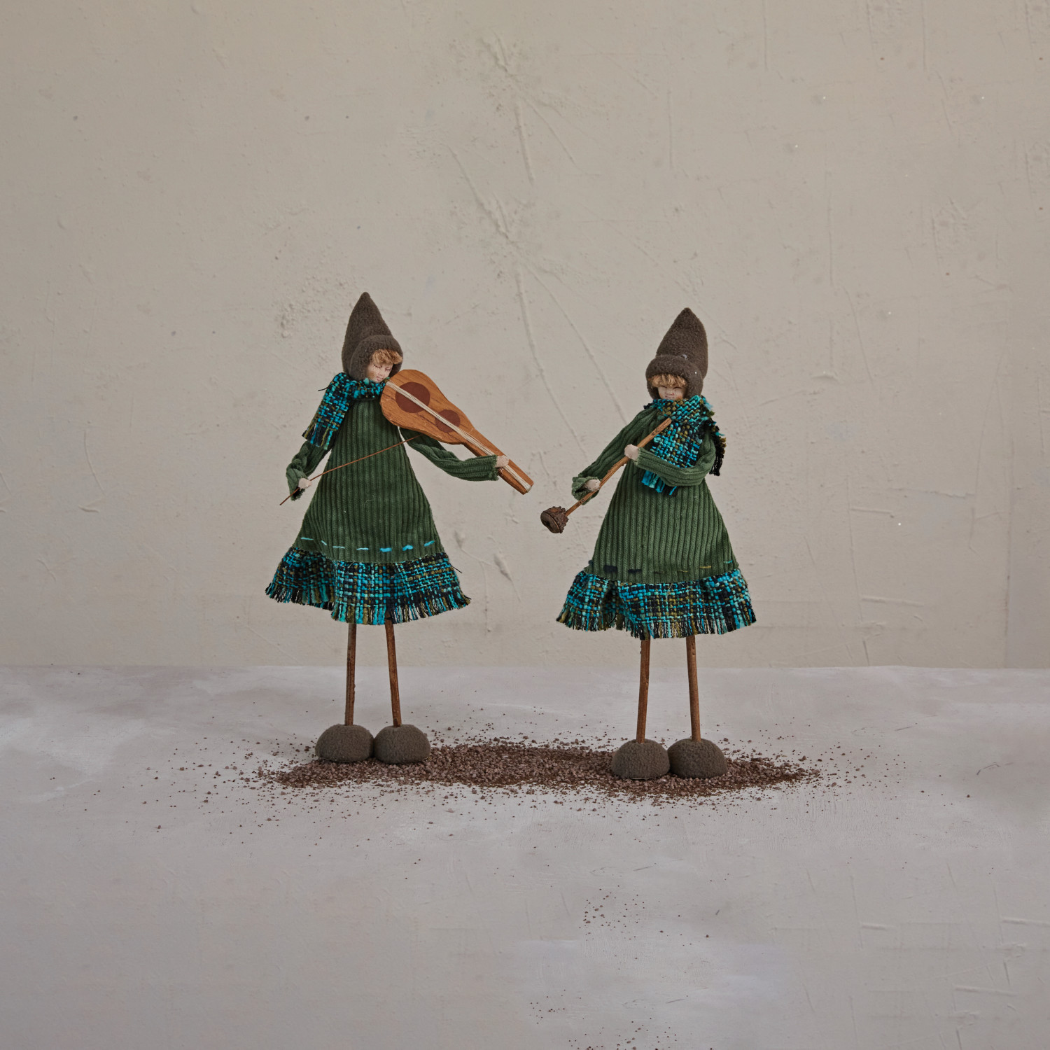 Catalog Name: 13-3/4"H Handmade Girl w/ Corduroy & Tweed Outfit, Instrument & Wood Legs, Multi Color, 2 Styles