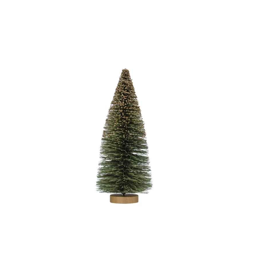 Catalog Name: 3-3/4" Round x 9"H Sisal Bottle Brush Tree w/ Glitter & Wood Base, Grey