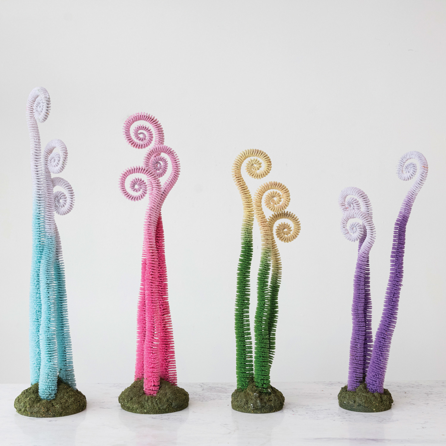 Flocked Bottle Brush Swirl w/ MDF Moss Covered Base, 2 Colors