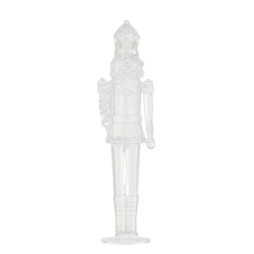 This acrylic nutcracker is a beautiful and convenient way to decorate the home. It features a classic acrylic nutcracker with a clear color that gives it a sleek and modern look, making it look like a glass sculpture. The nutcracker has a detailed and refined shape that is pleasant to touch and look at. The nutcracker is a timeless and elegant piece that can fit any style, from festive to sophisticated. It is ideal for adding some tradition and nostalgia to the home, where it can make any space feel more cozy and merry. The nutcracker is made of acrylic that is durable, smooth, and easy to clean. It measures 2.5 inches in diameter and 11.25 inches in height, making it a noticeable and attractive accessory. This is a perfect choice for anyone who loves classic and elegant home decor. A classic acrylic nutcracker with a clear color that gives it a sleek and modern look. A timeless and elegant piece that can fit any style, from festive to sophisticated. Ideal for adding some tradition and nostalgia to the home, this nutcracker can be displayed on a dining table, a kitchen island, or a buffet.