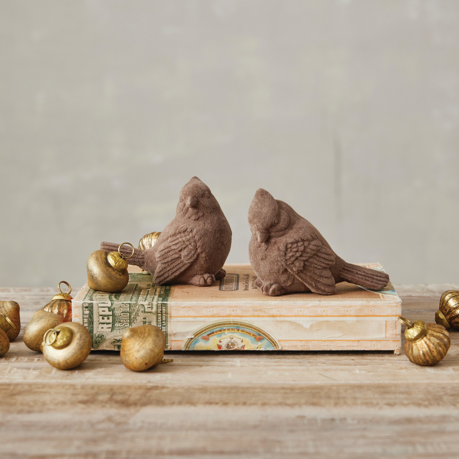 3-3/4"L x 2"W x 3"H Flocked Resin Cardinal, Taupe, 2 Styles