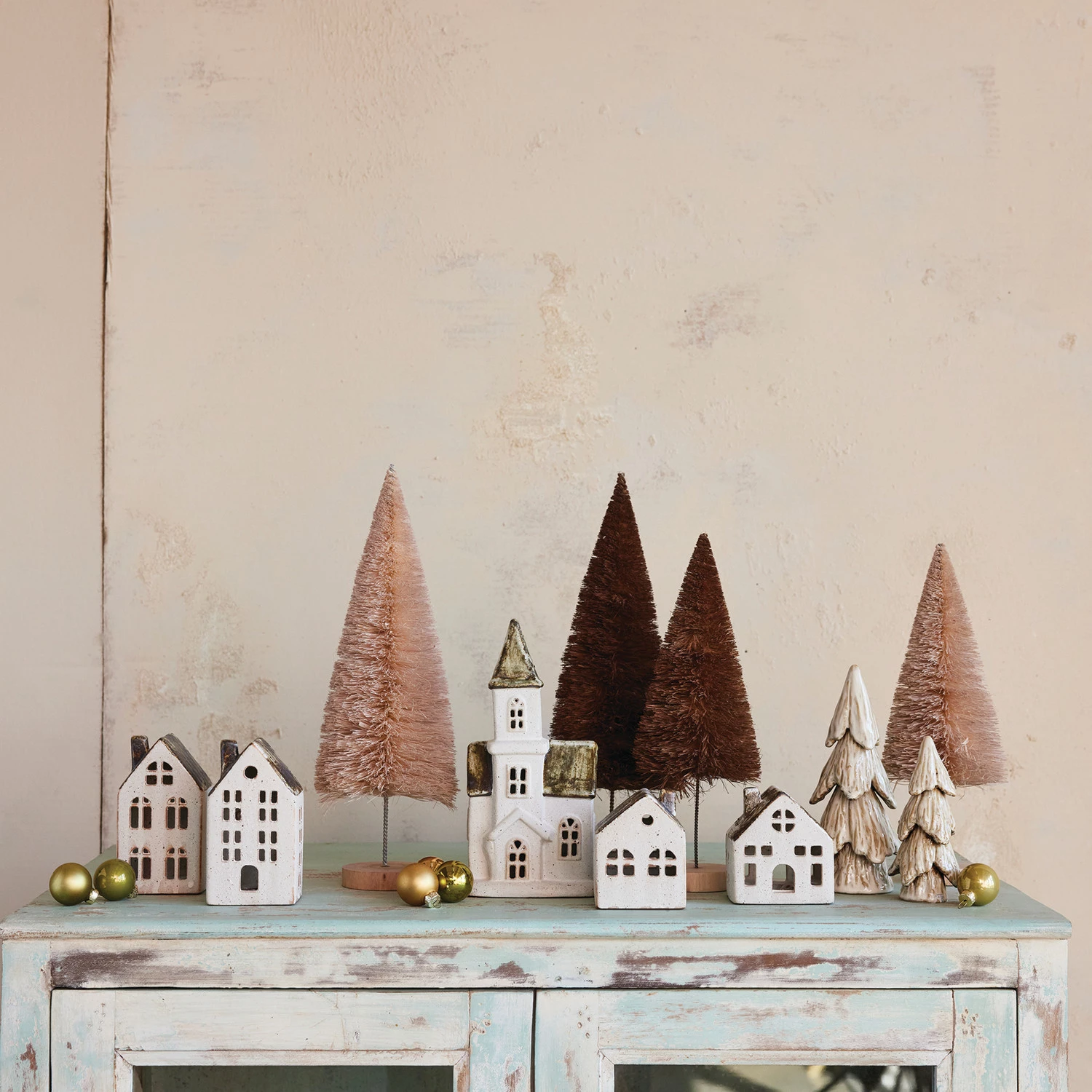 Catalog Name: 3"L x 2-1/2"W x 3-3/4"H Stoneware House, Reactive Glaze, White & Brown, 2 Styles (Each One Will Vary)