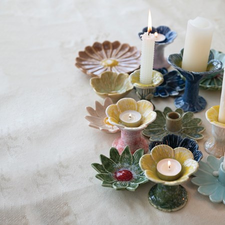 Catalog Name: 5"H, 4-1/2"H & 3-1/2"H Stoneware Trees w/ Patterns, Red, White & Unglazed, Set of 3
