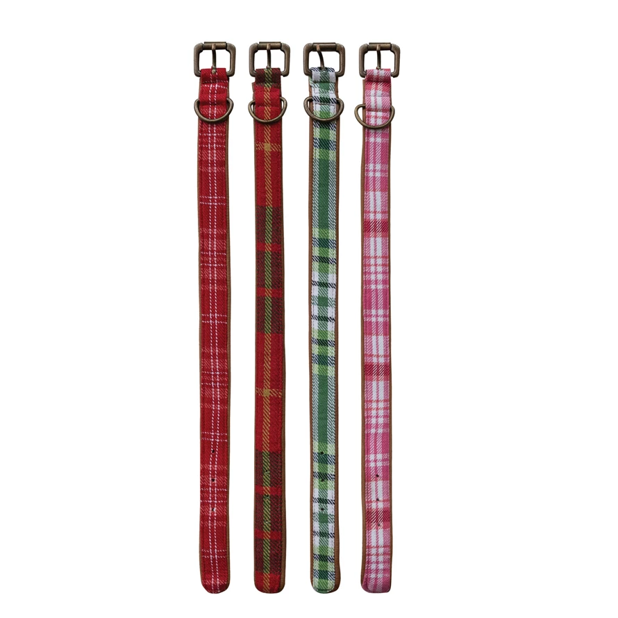 Cotton Flannel & Leather Dog Collar with Metal Buckle, 4 Styles, Small (Each One Will Vary)