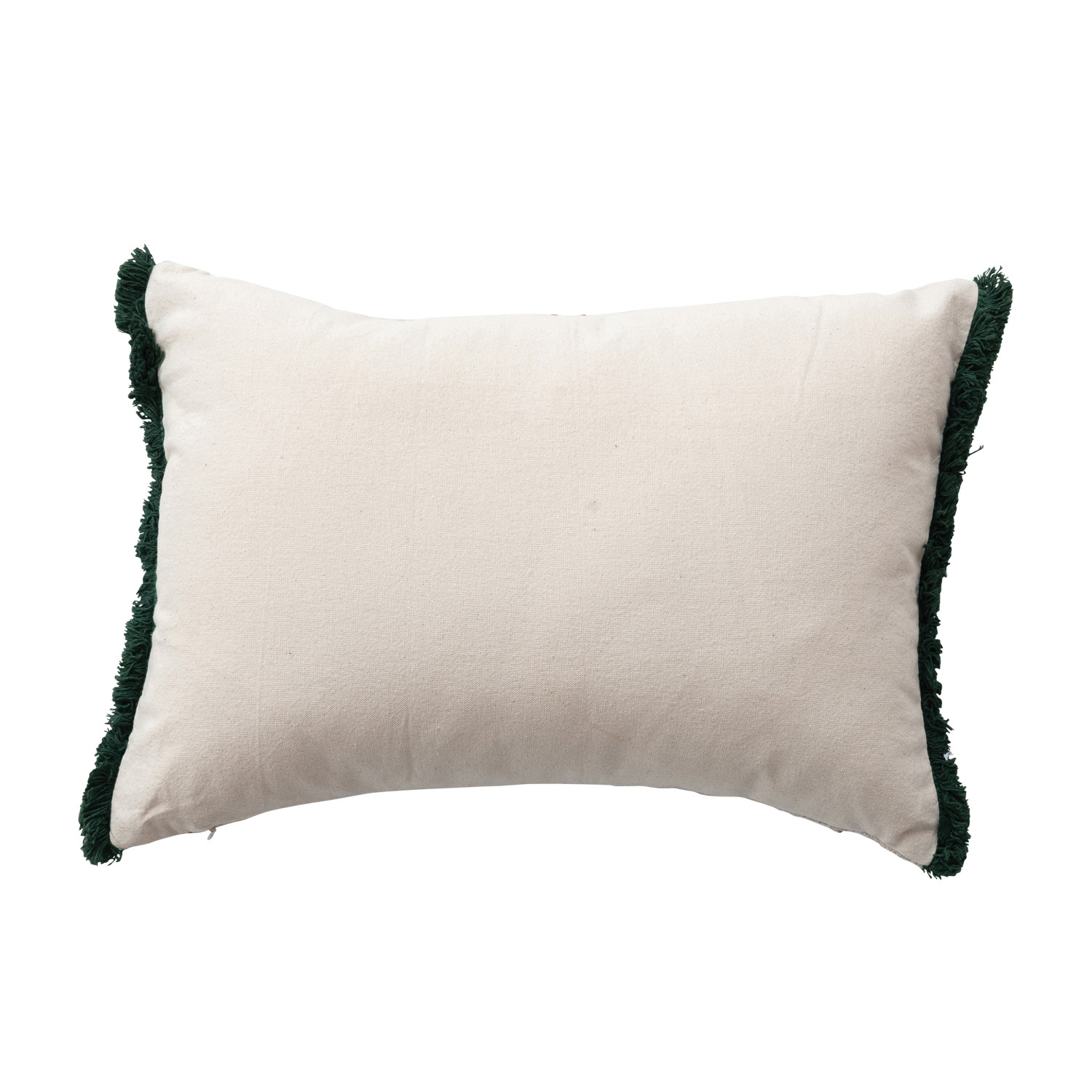 Catalog Name: 20"L x 14"H Cotton Slub Printed Lumbar Pillow w/ Tree Pattern, Embroidery & Tufted Fringe, Multi Color