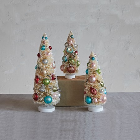 5" Round x 14"H Sisal Bottle Brush Tree with Wood Base, Brown