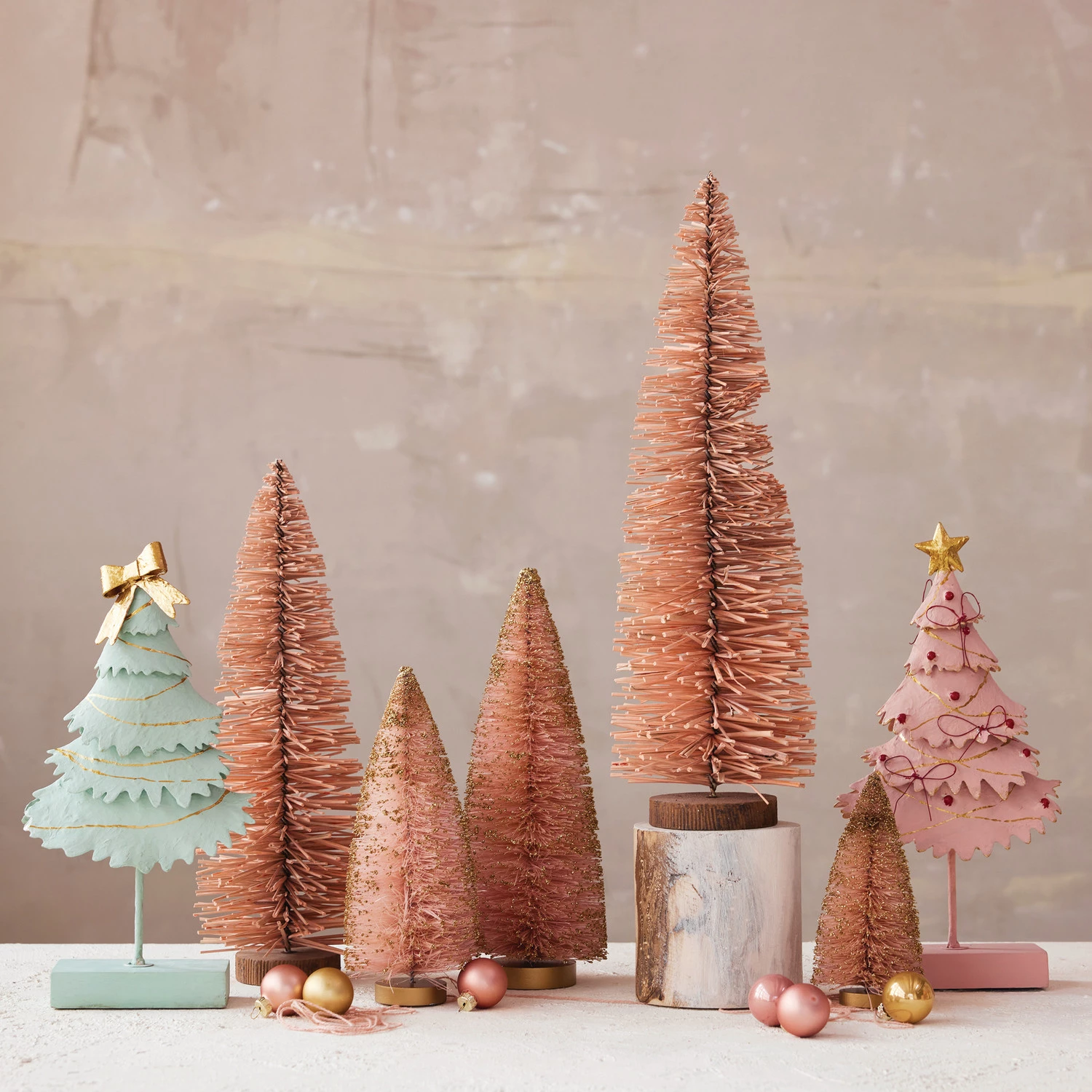 4-1/2" Round x 12"H Sisal Bottle Brush Tree with Glitter, Pink