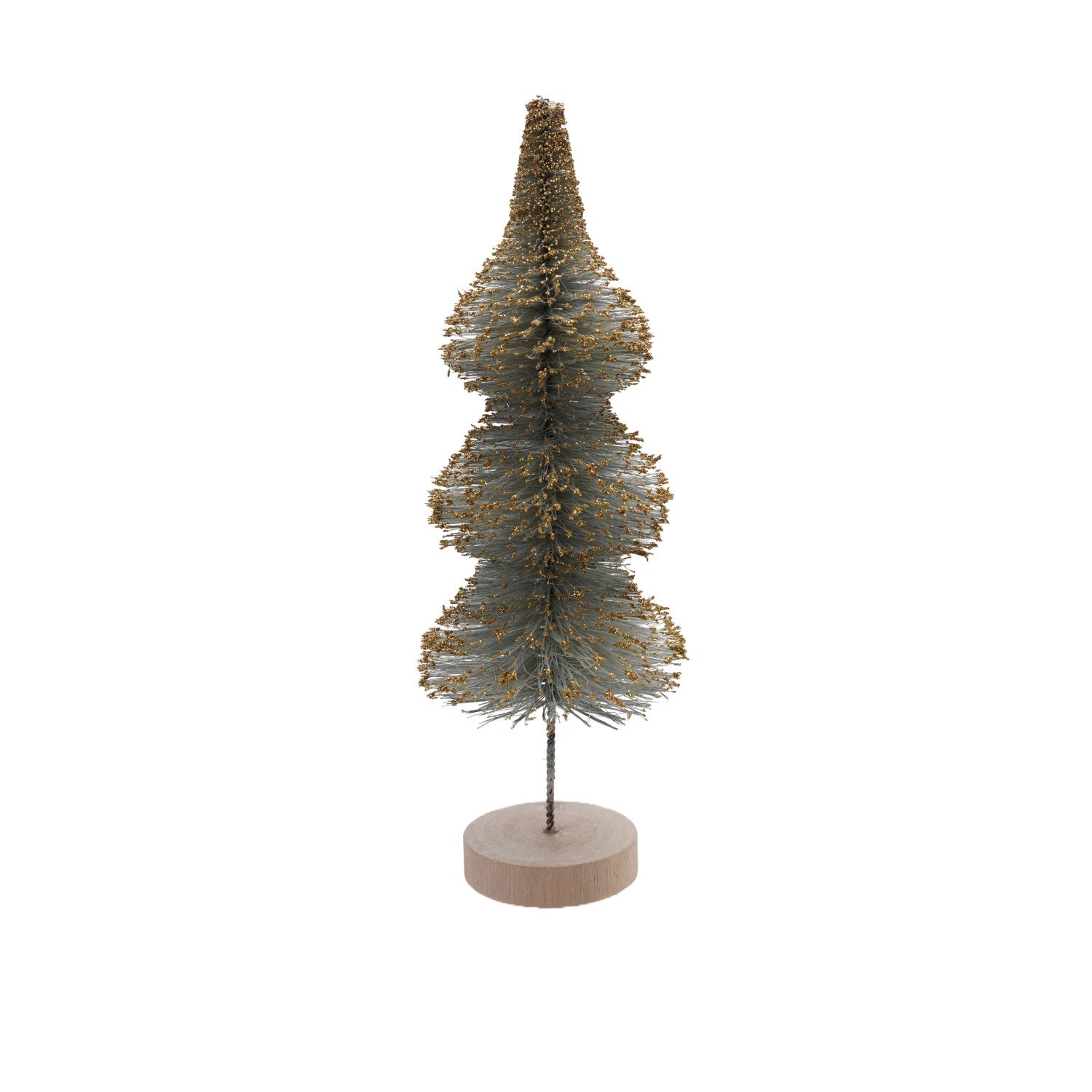Catalog Name: 4" Round x 11-3/4"H Sisal Bottle Brush Tree w/ Gold Glitter & Wood Base, Mint Color
