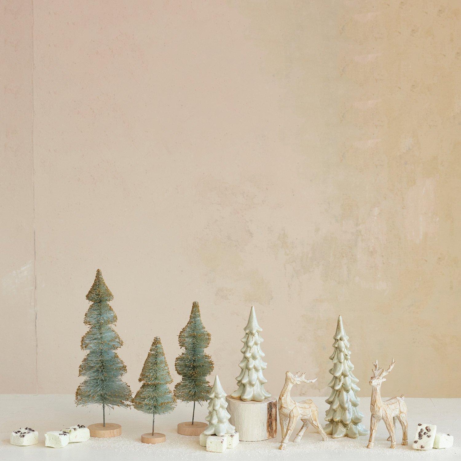 Sisal Bottle Brush Tree with Gold Glitter & Wood Base, Mint Color