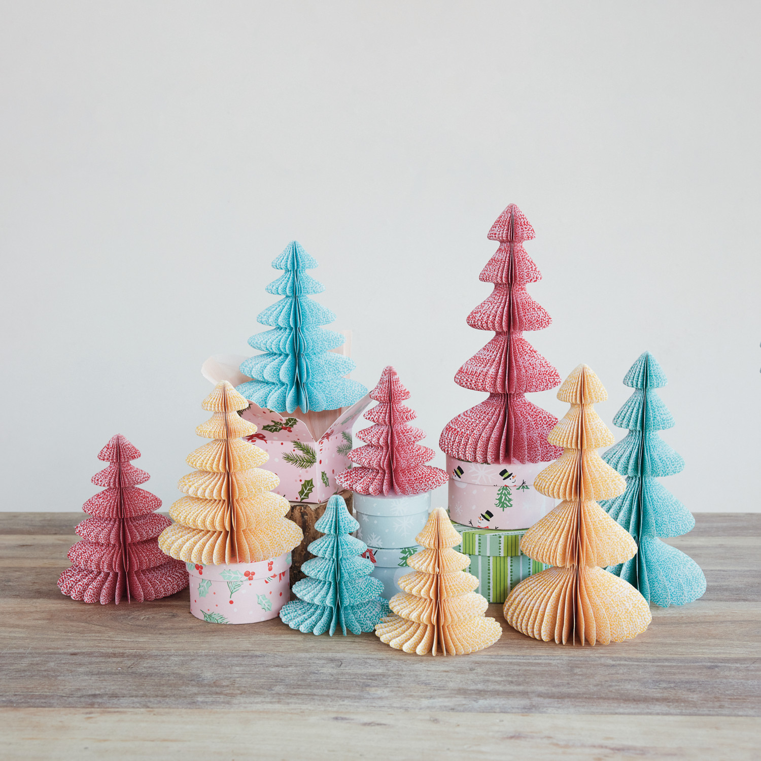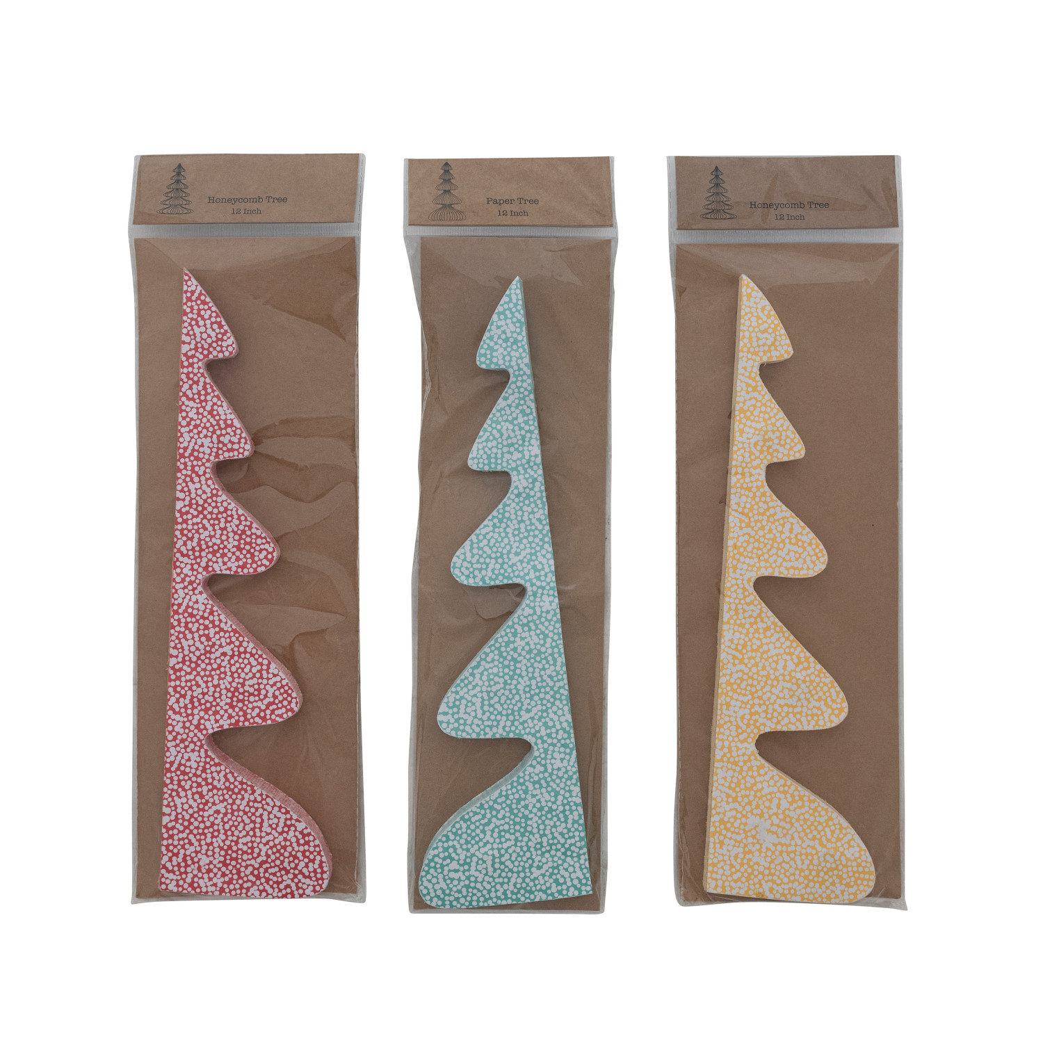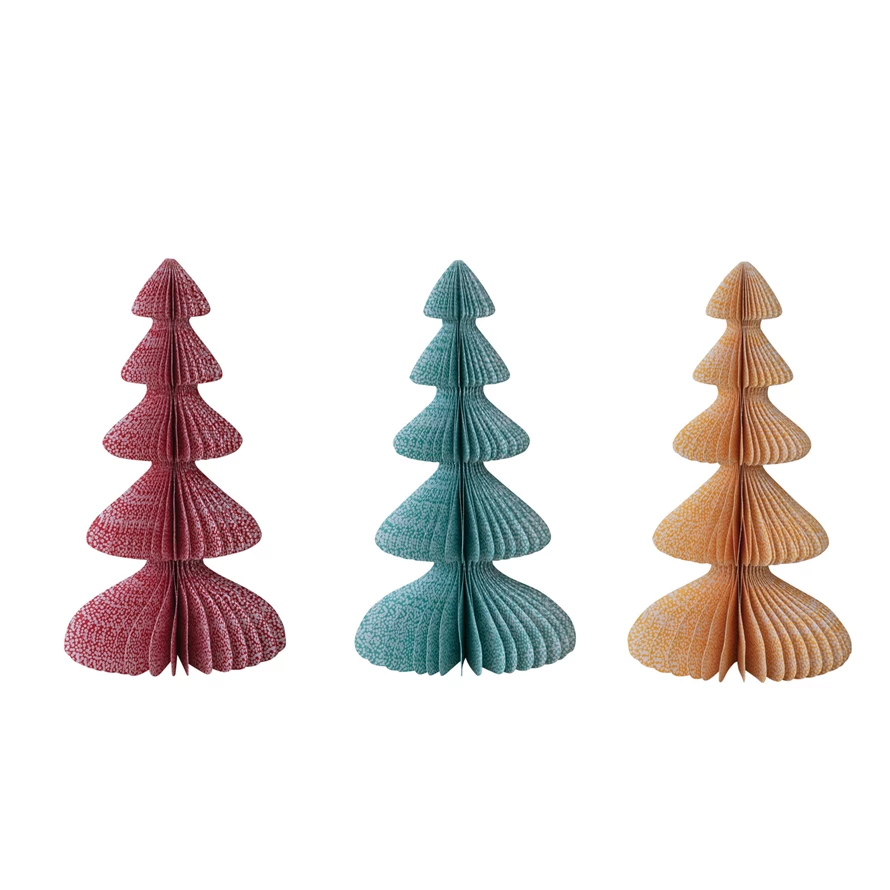 Handmade Printed Recycled Paper Folding Honeycomb Tree with Dot Pattern, 3 Colors