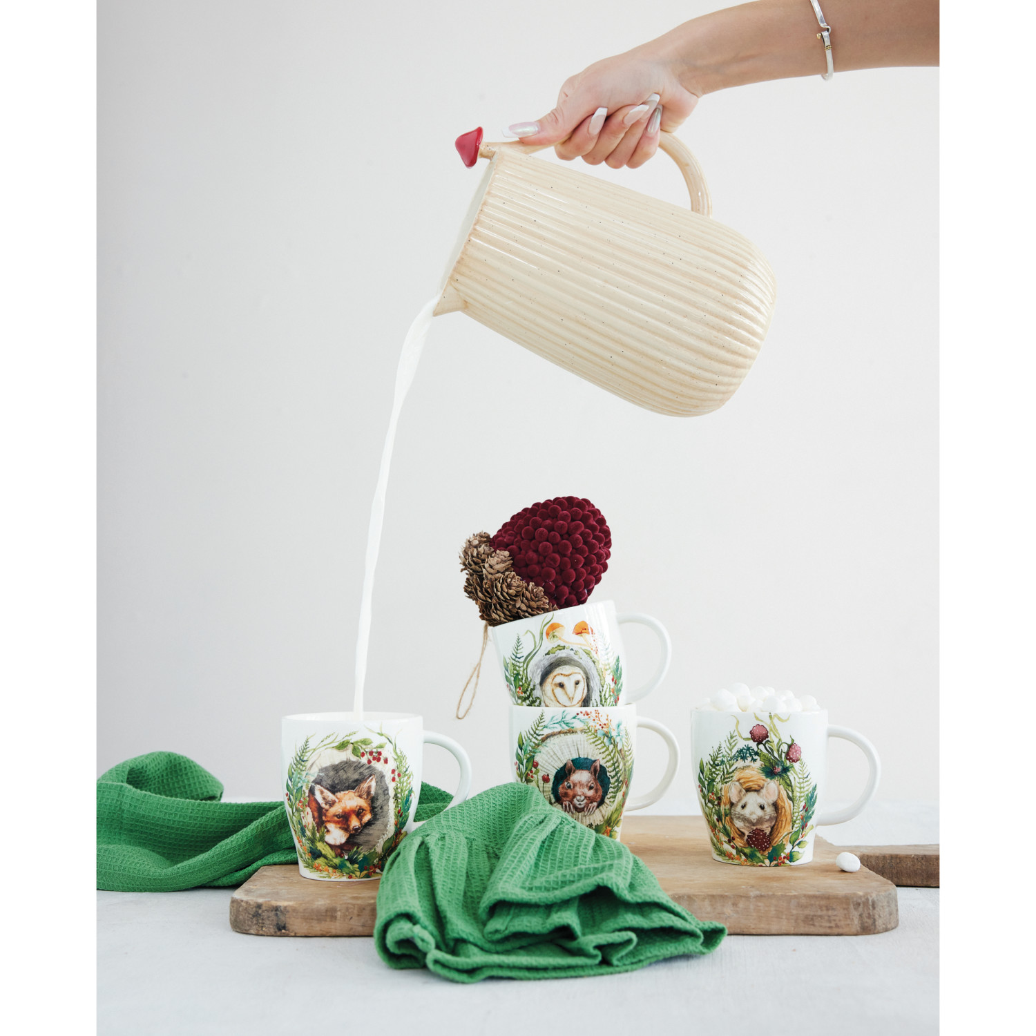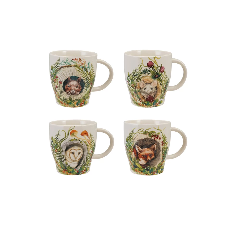 14 oz. Stoneware Mug with Woodland Animal & Seasonal Botanicals, 4 Styles ©