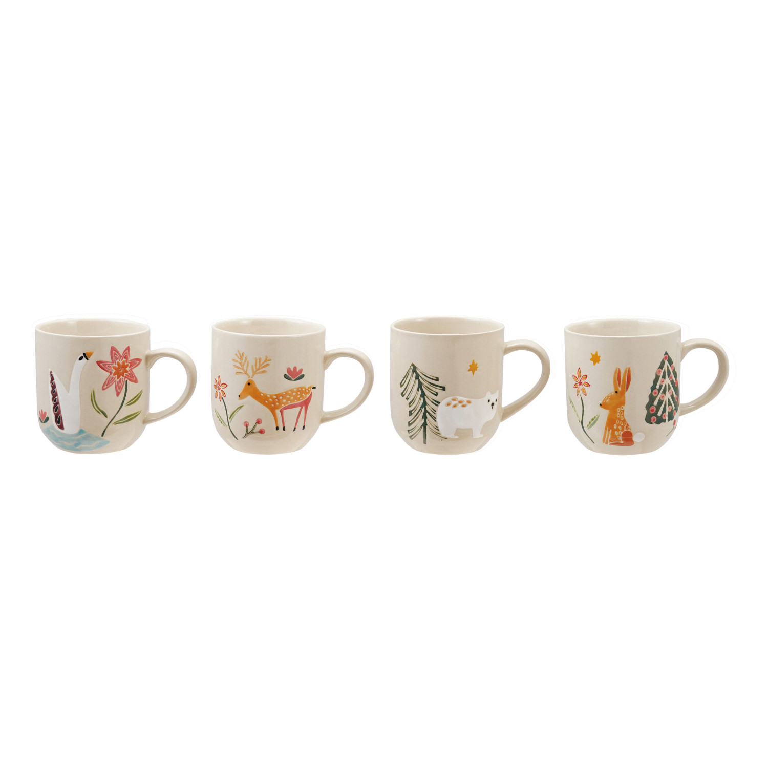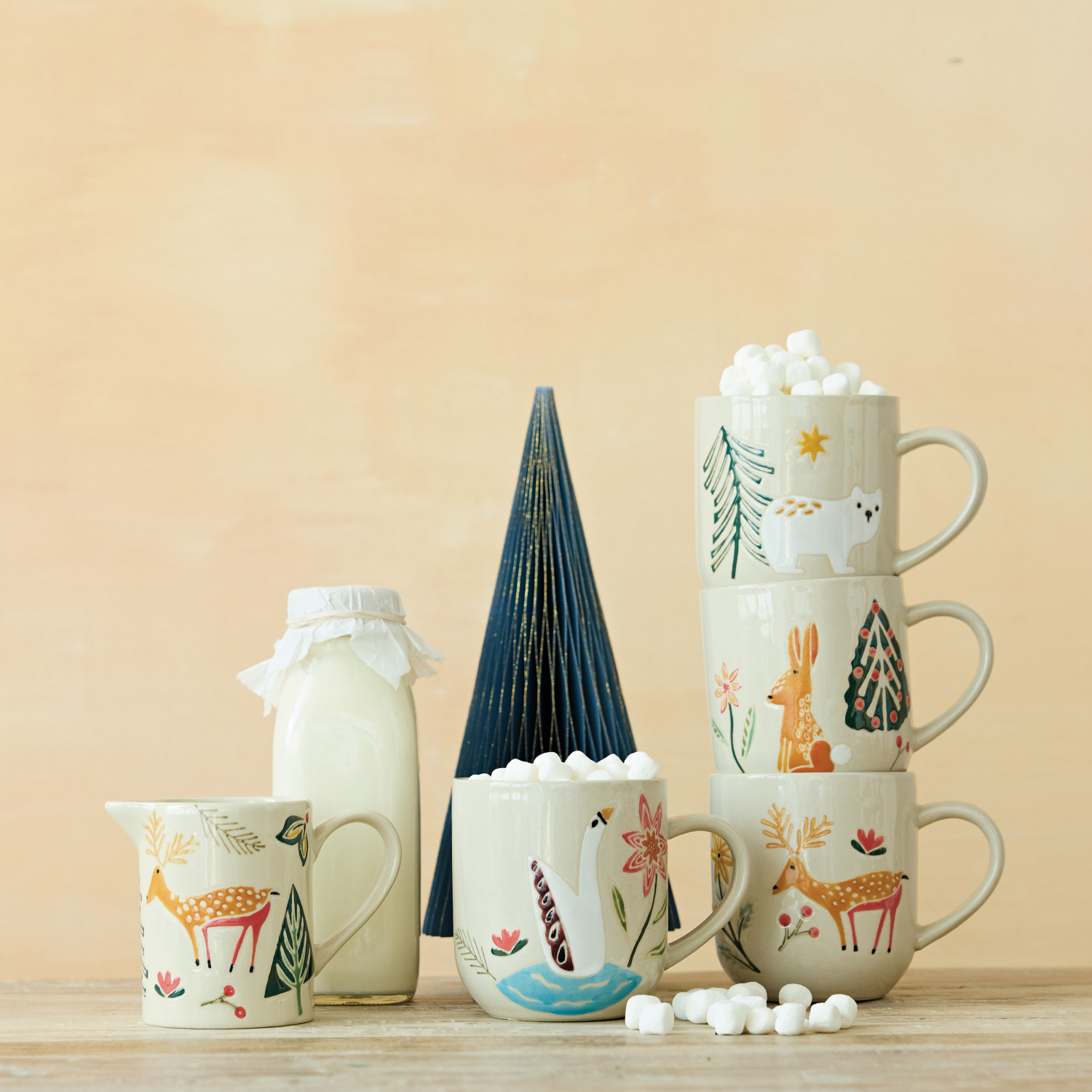 12 oz. Hand-Painted Stoneware Mug with Wax Relief Animal & Seasonal Botanicals, 4 Styles ©