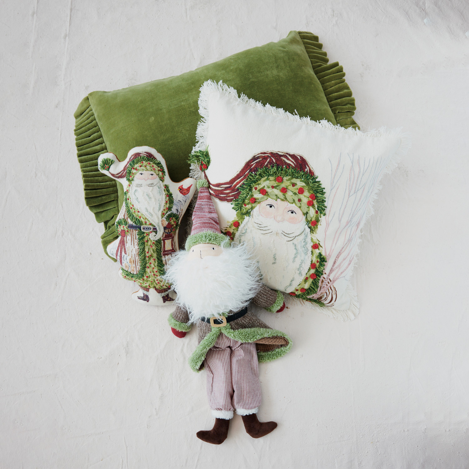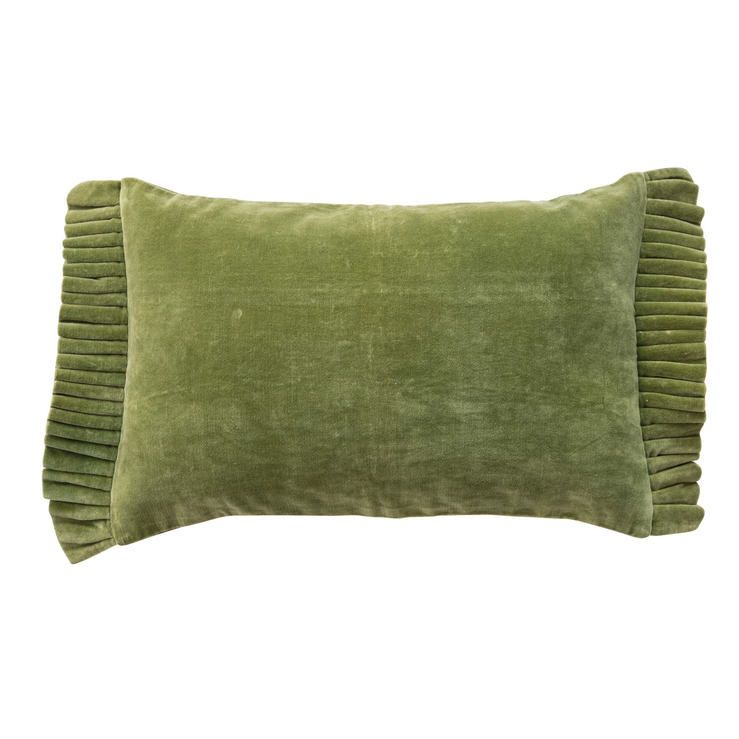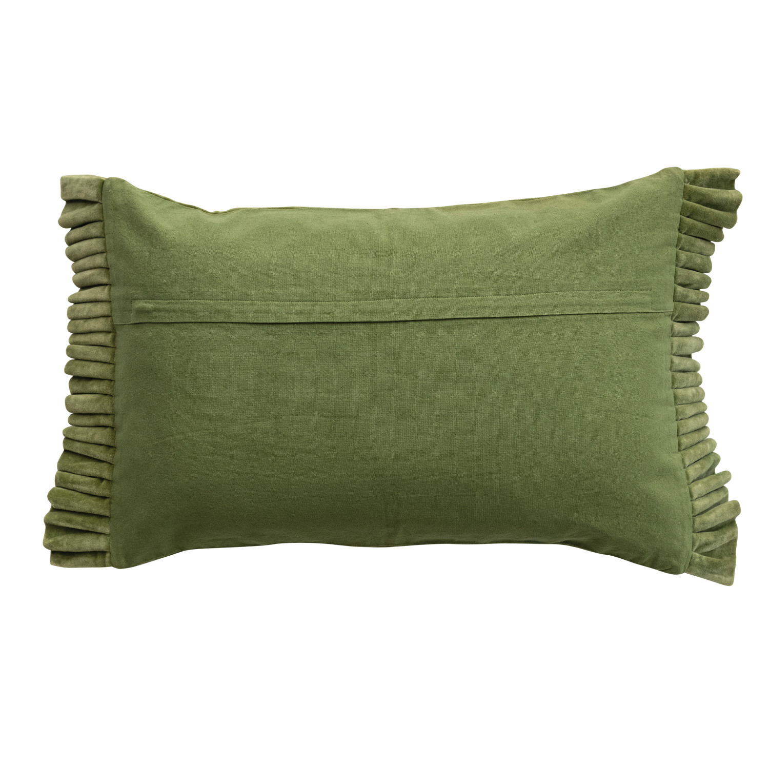 Cotton Velvet Lumbar Pillow with Ruffle Trim, Green