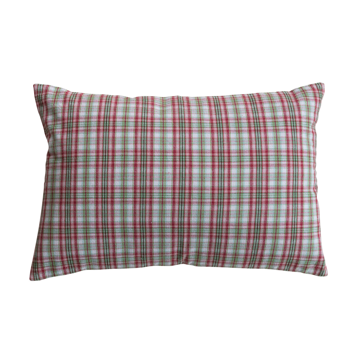 Woven Cotton Lumbar Pillow with Plaid Pattern