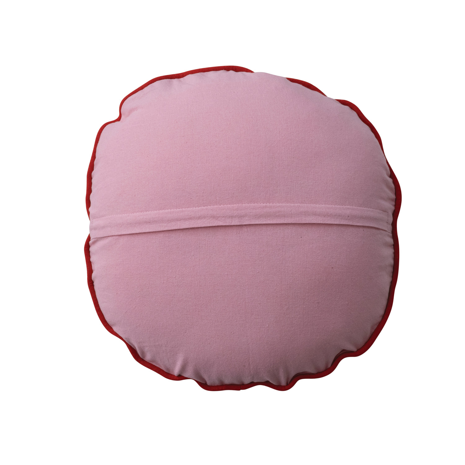 Catalog Name: 16" Round Linen Printed Pillow w/ Ornaments, Embroidery, Beads, Piping & Cotton Back "Deck The Halls", Multi Color ©