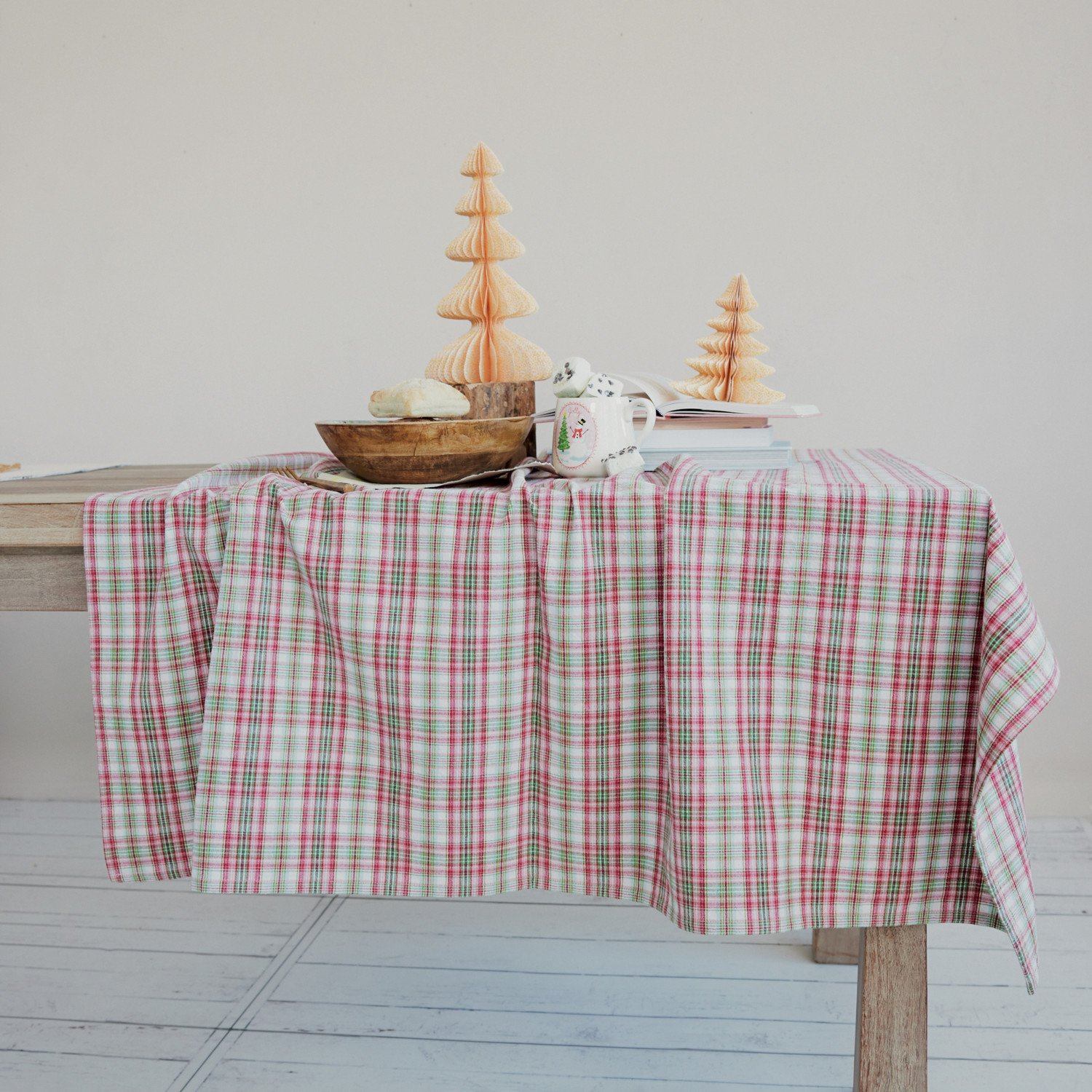 84"L x 60"W Woven Cotton Table Cloth with Plaid Pattern