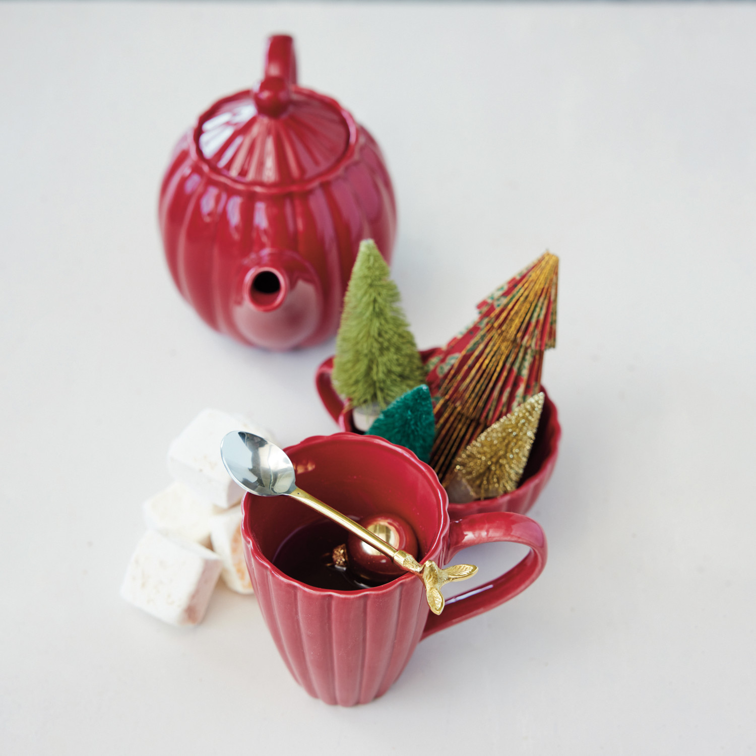 14 oz. Stoneware Ribbed Mug, Red (Each One Will Vary)