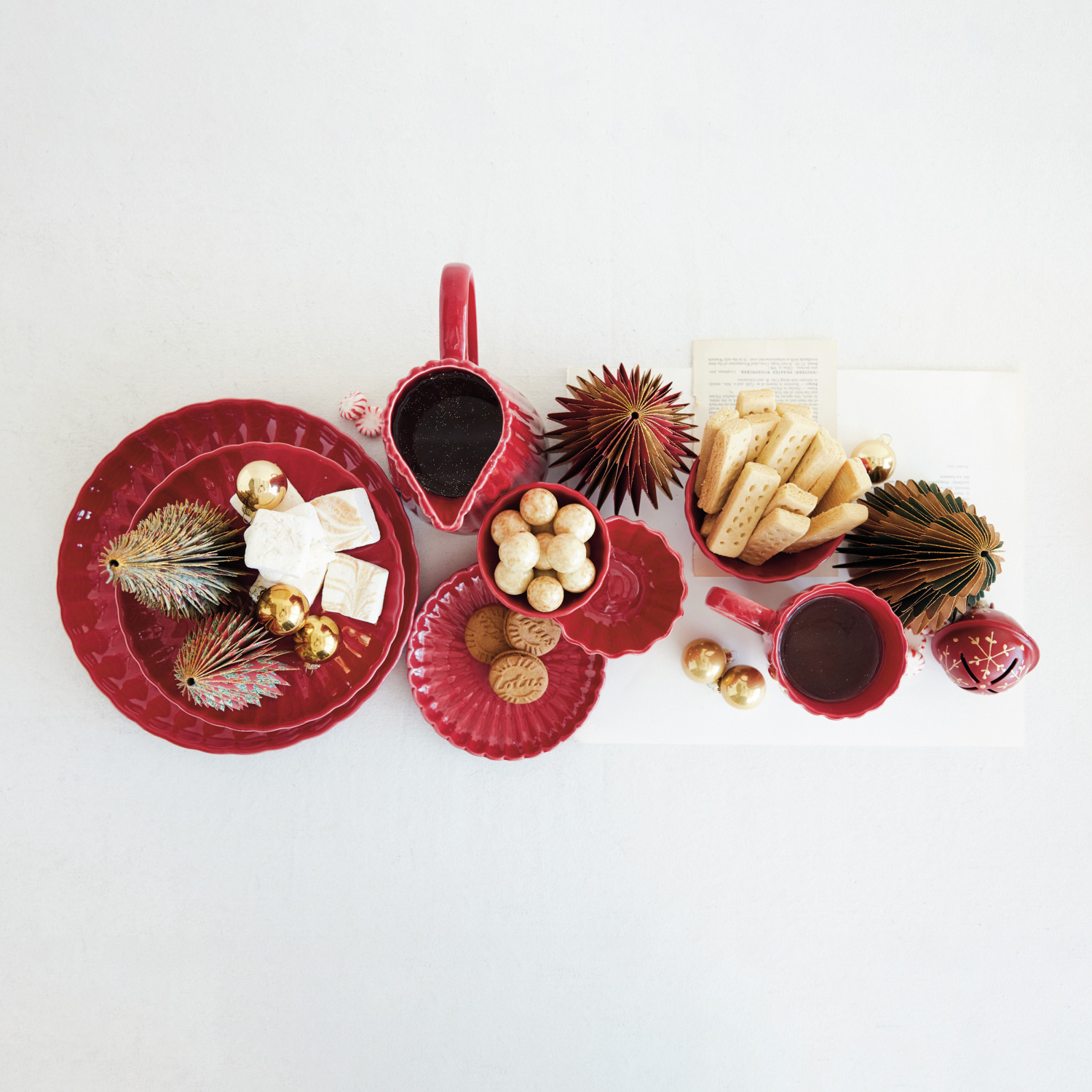 Catalog Name: 3-1/2" Round x 4-3/4"H 14 oz. Stoneware Ribbed Mug, Reactive Glaze, Red (Each One Will Vary)