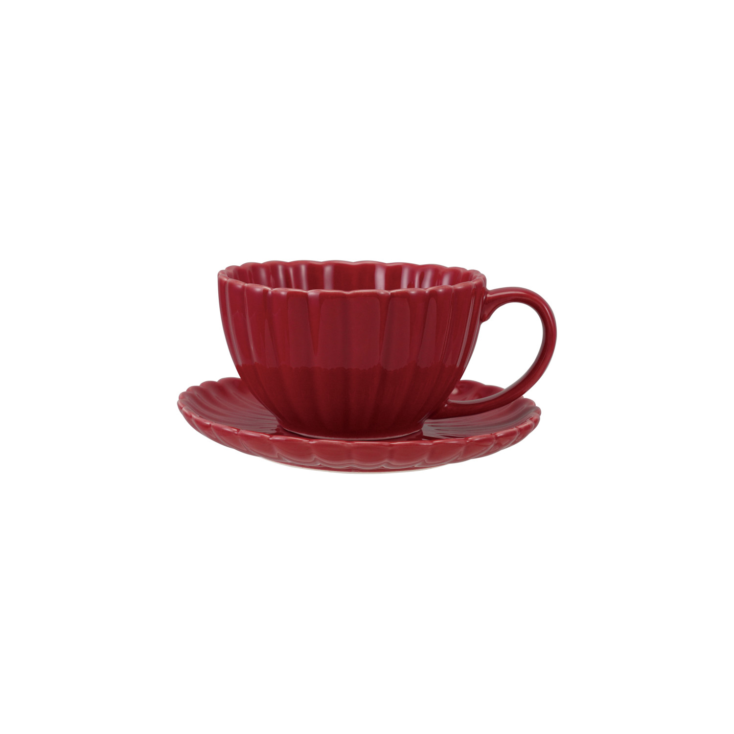 10 oz. Stoneware Ribbed Mug with Saucer, Red, Set of 2 (Each One Will Vary)