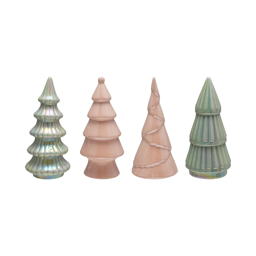 Catalog Name: Approximately 7"H Stoneware Christmas Tree, Iridescent Finish, 4 Styles