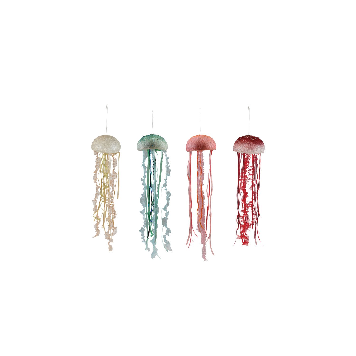Catalog Name: 6" Round x 23-1/2"H Hanging Foam Jellyfish w/ Ribbon Tentacles, Glitter, Sequins & Beads, Multi Color, 4 Styles