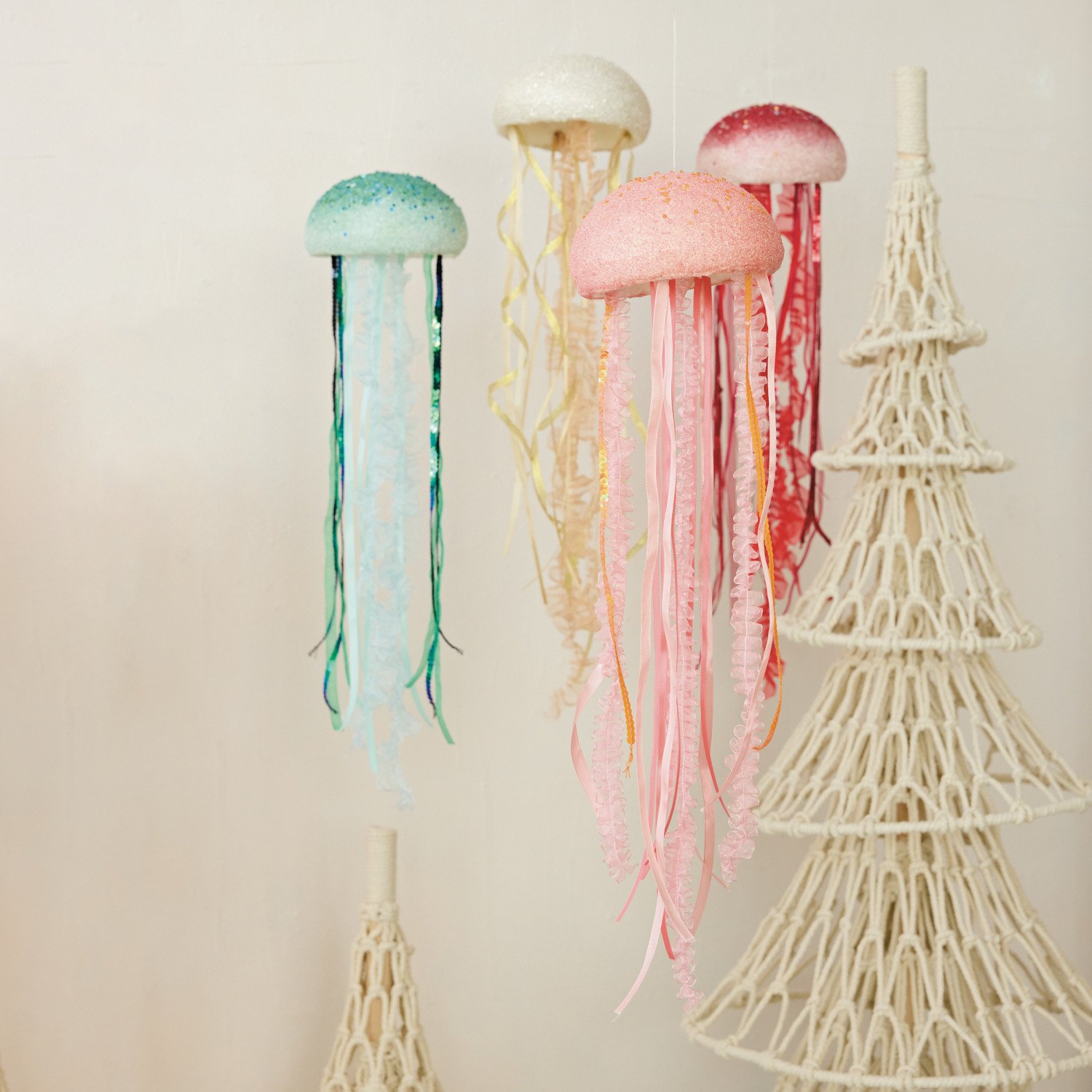 Hanging Foam Jellyfish with Ribbon Tentacles, Glitter, Sequins & Beads, 4 Styles