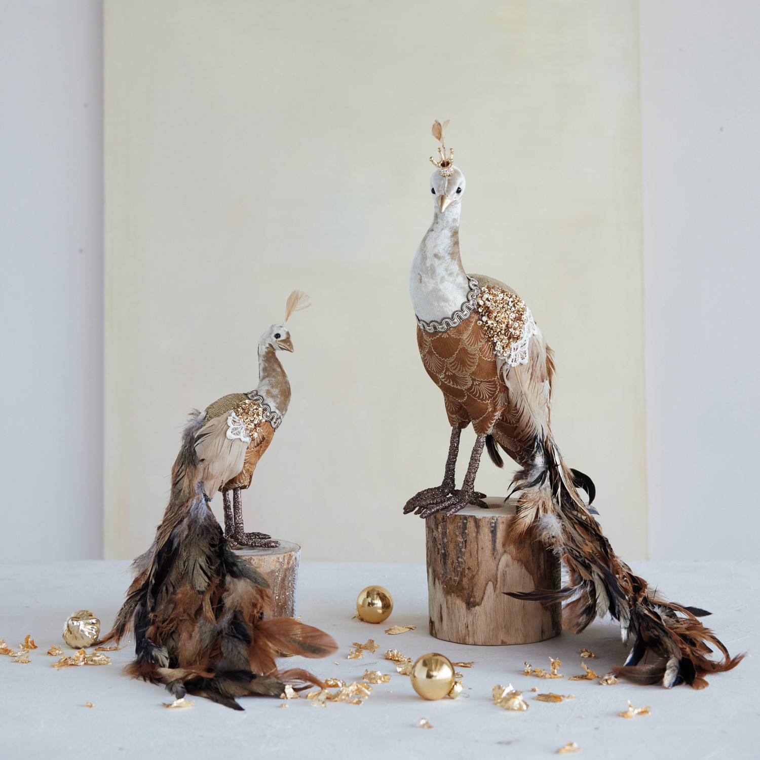 Catalog Name: 15"L x 6-3/4"W x 14"H Foam & Fabric Peacock w/ Sequins & Feathers, Brown